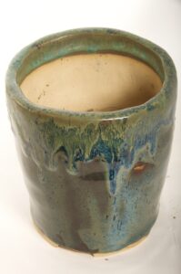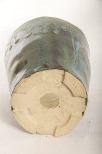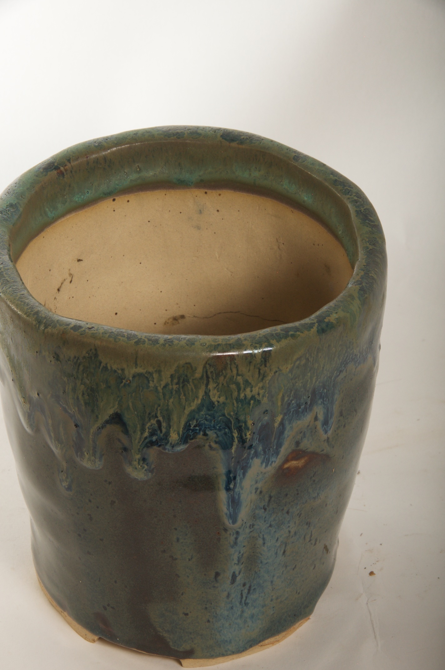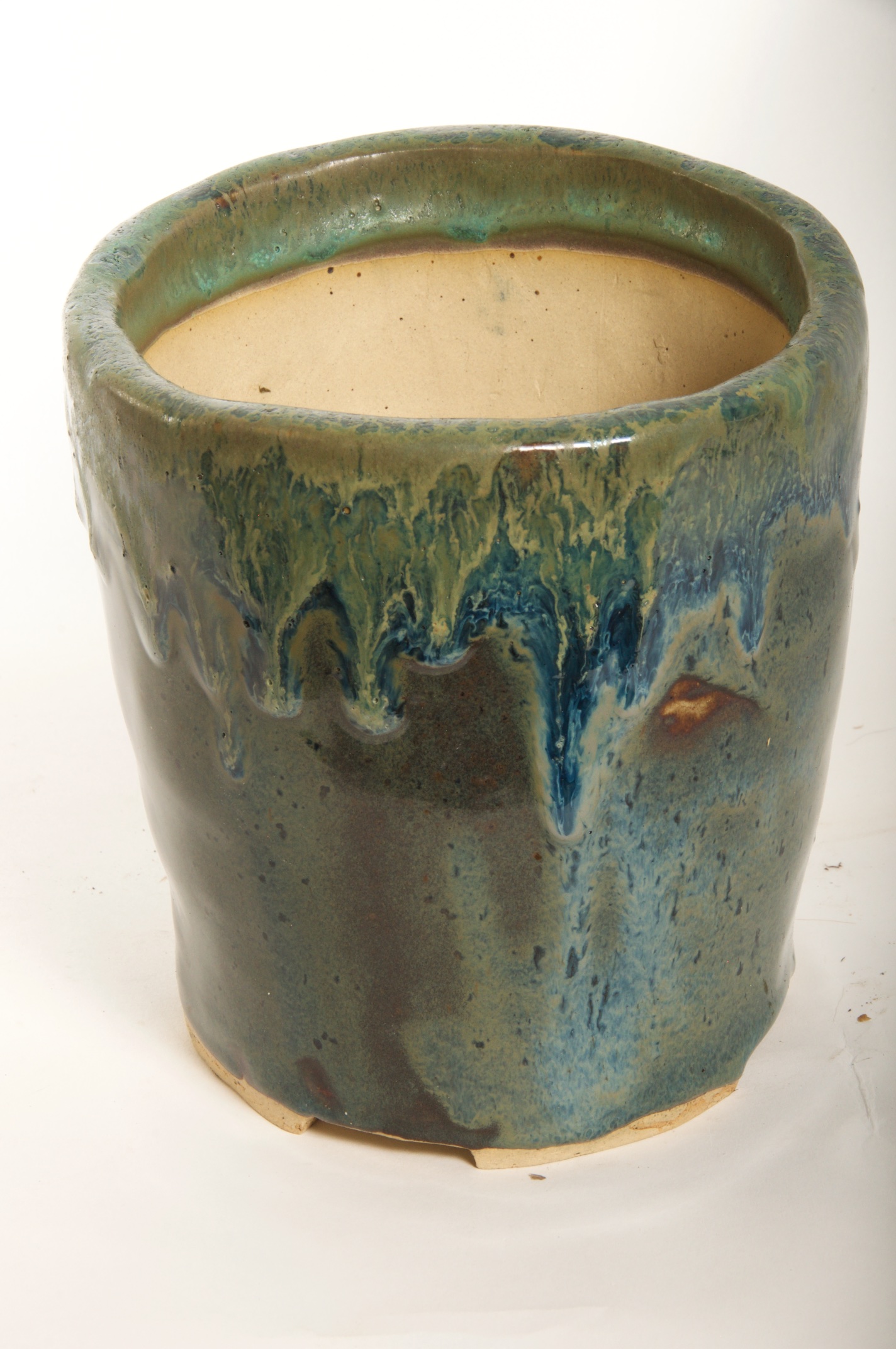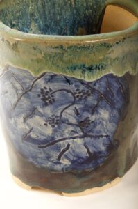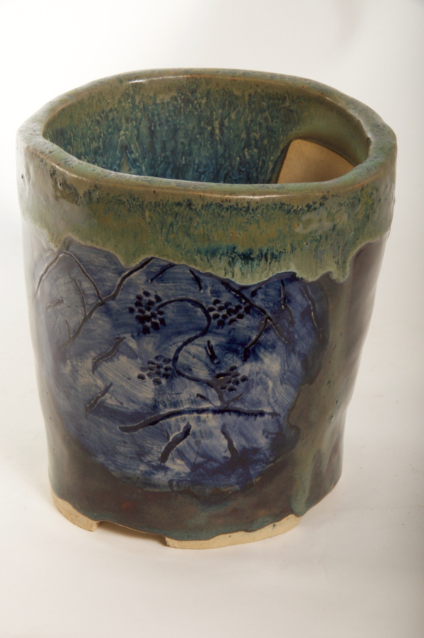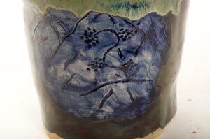 Round Glazed Cascade Bonsai Pot w/ sgraffito mountain/tree scene – Available Immediately
