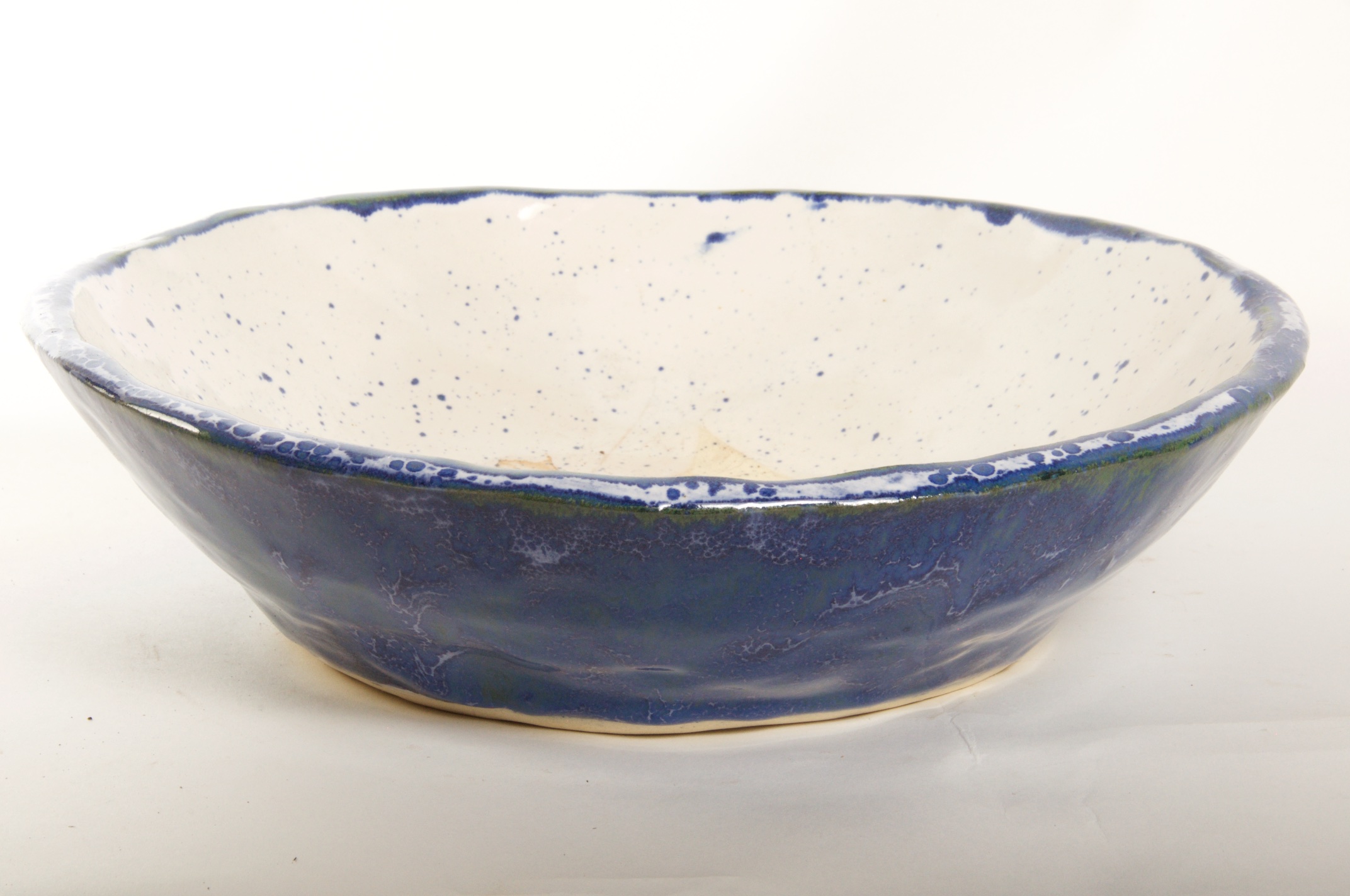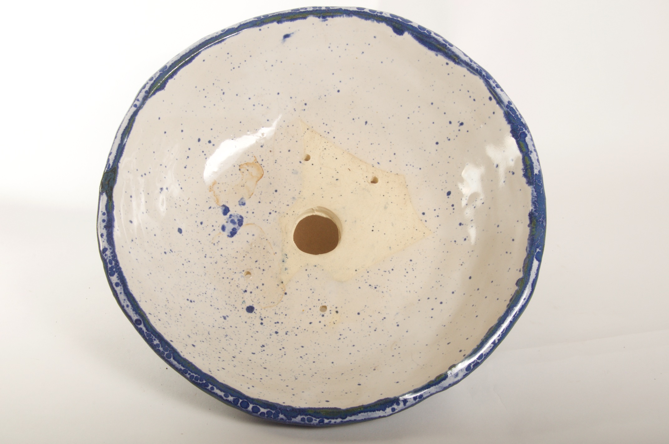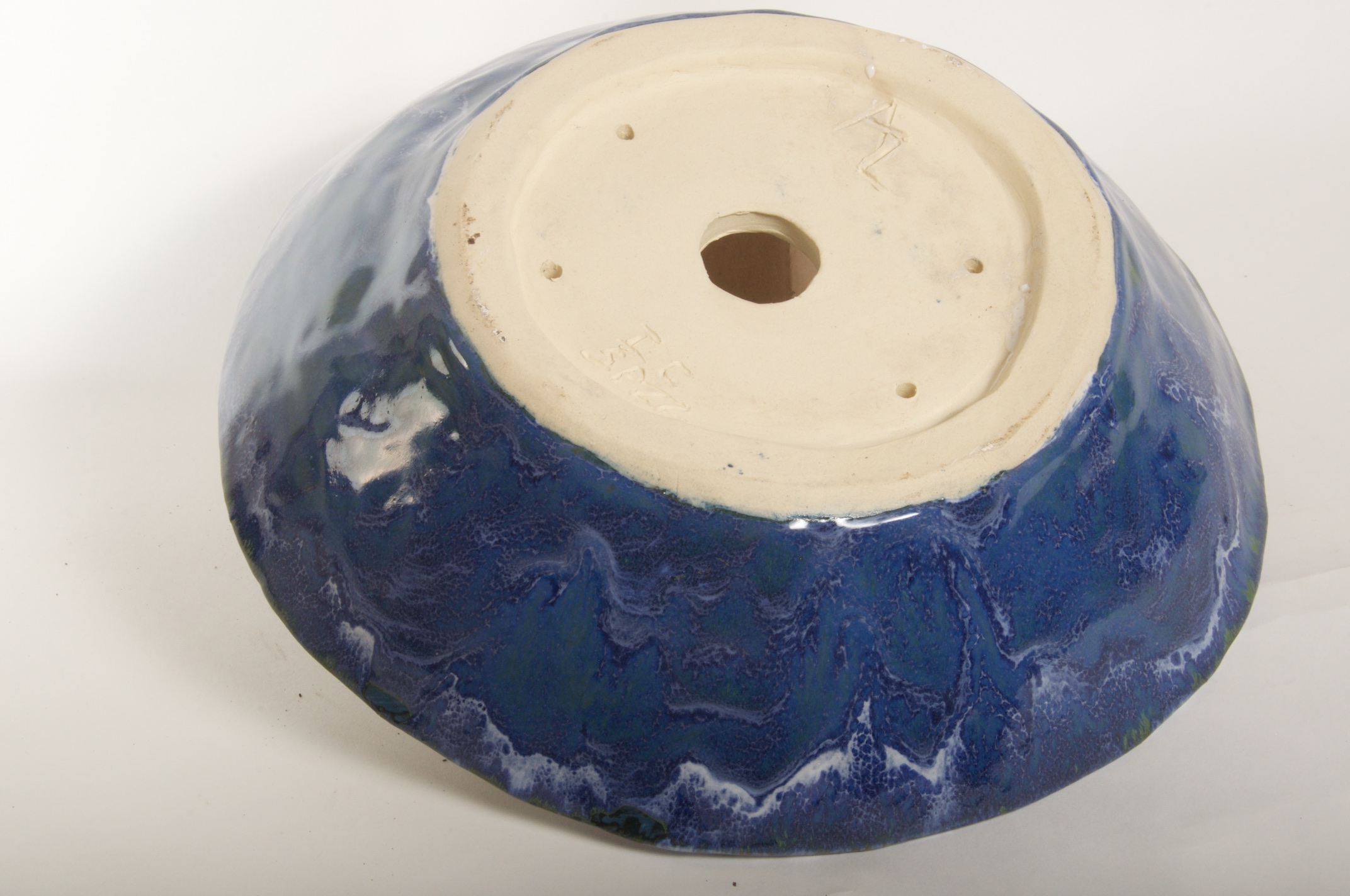 Large Blue/White Glazed Round Bowl Style Bonsai Pot – Available Immediately