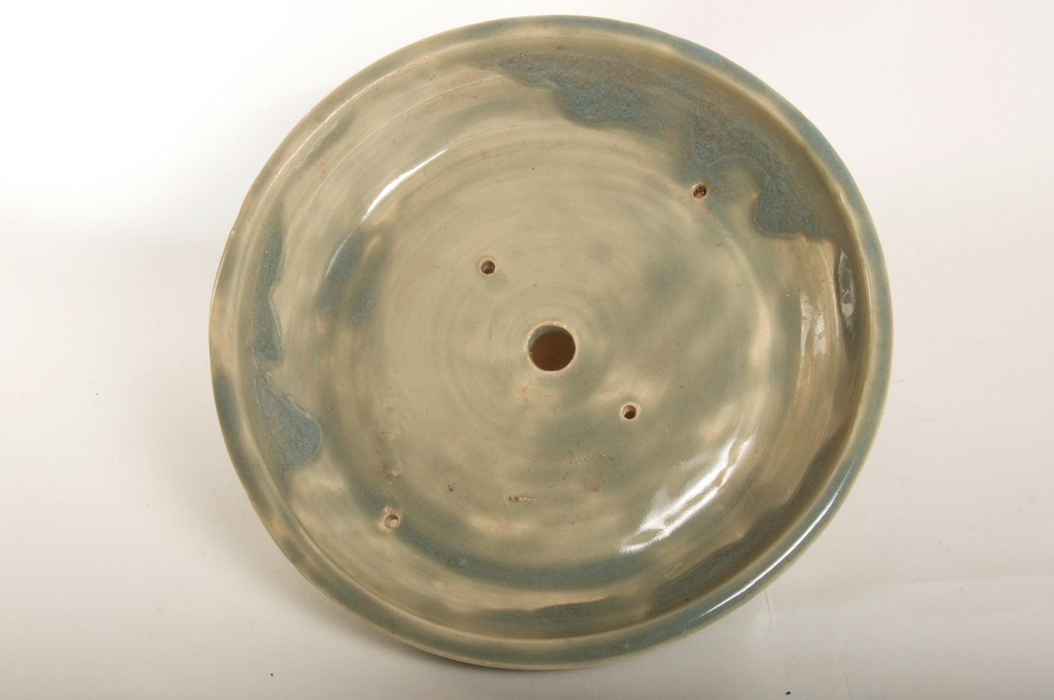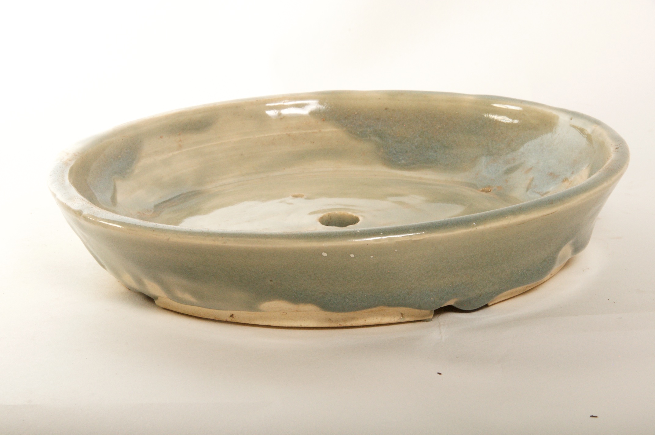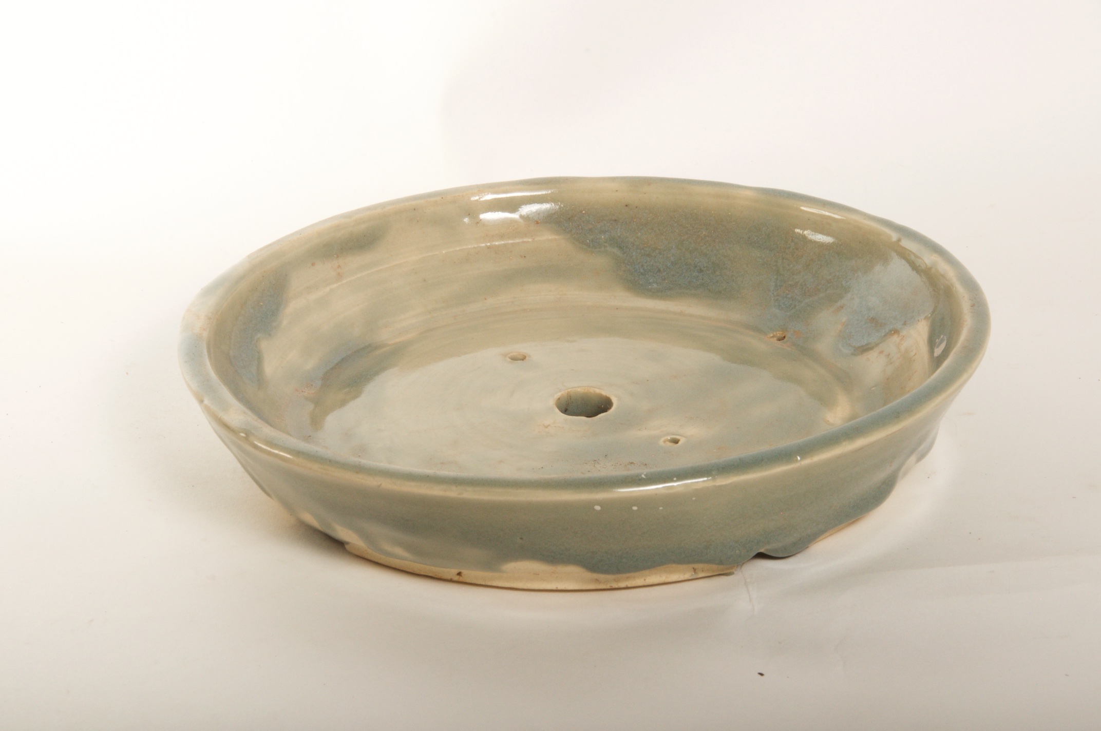Shallow Green/White Round Bonsai Pot – Available Immediately