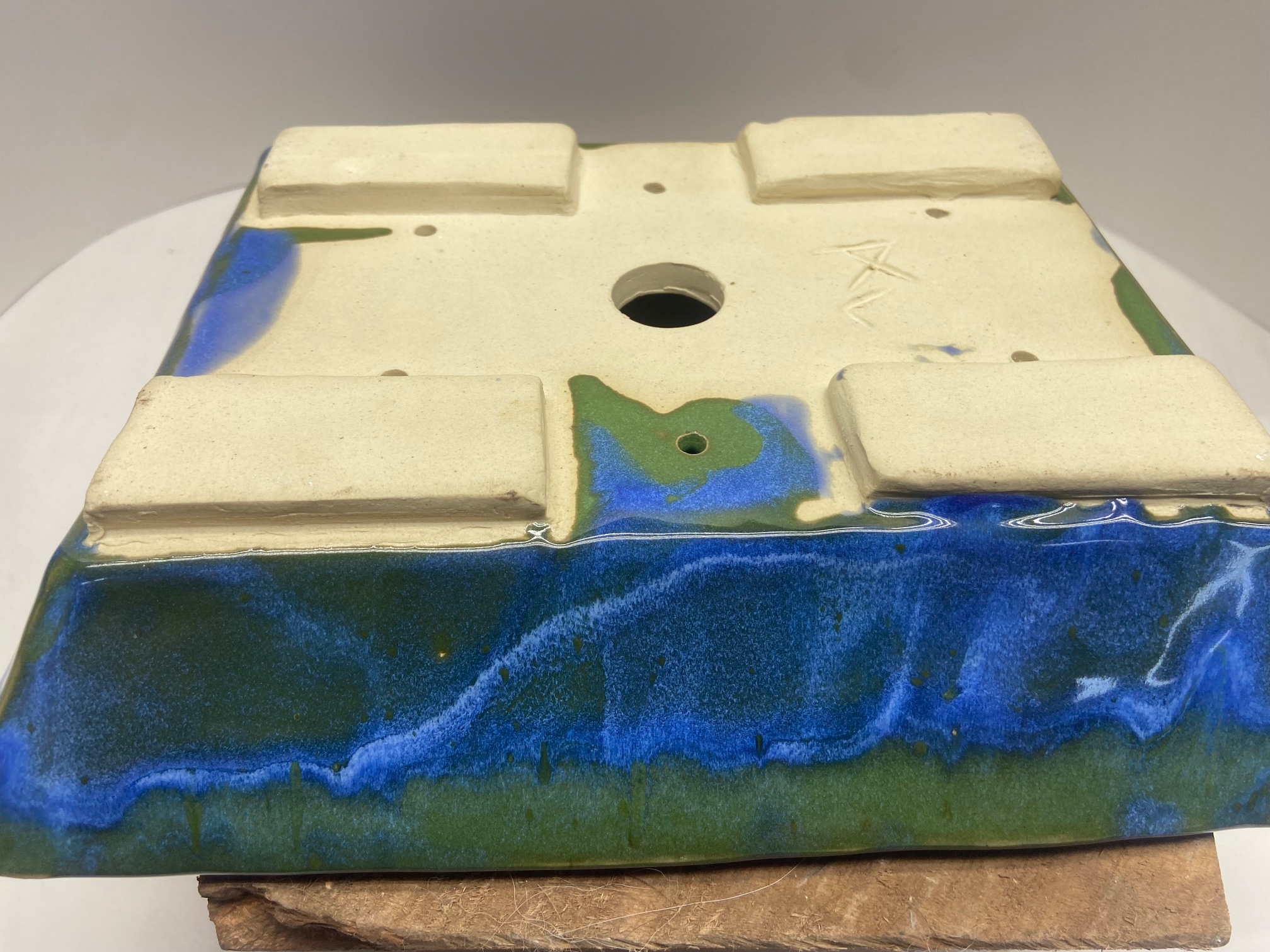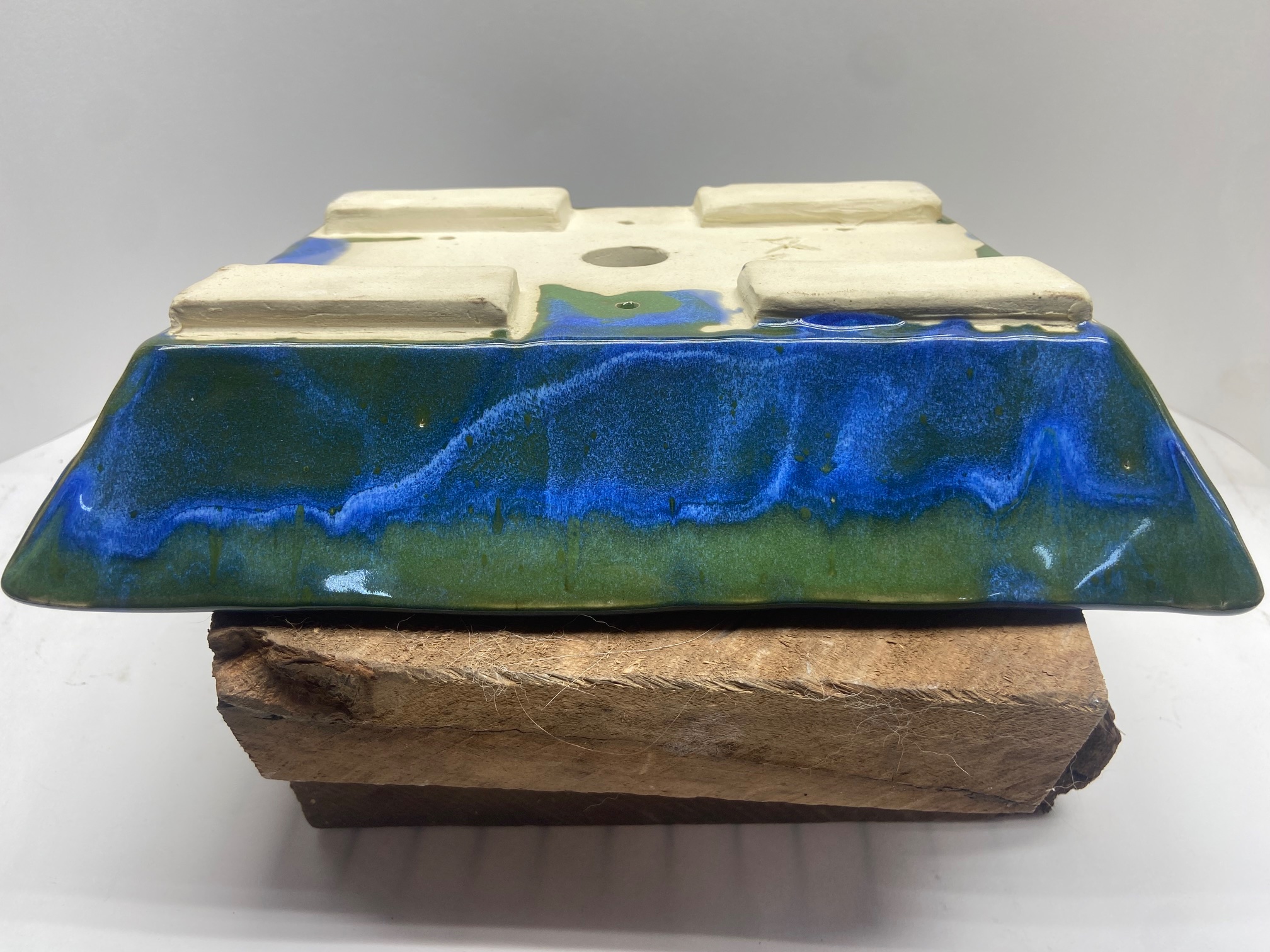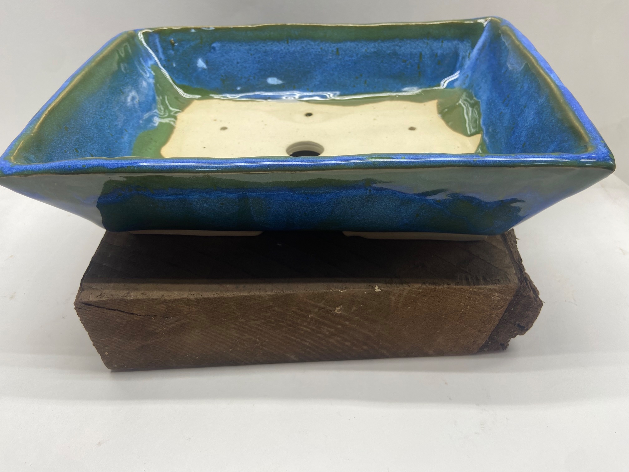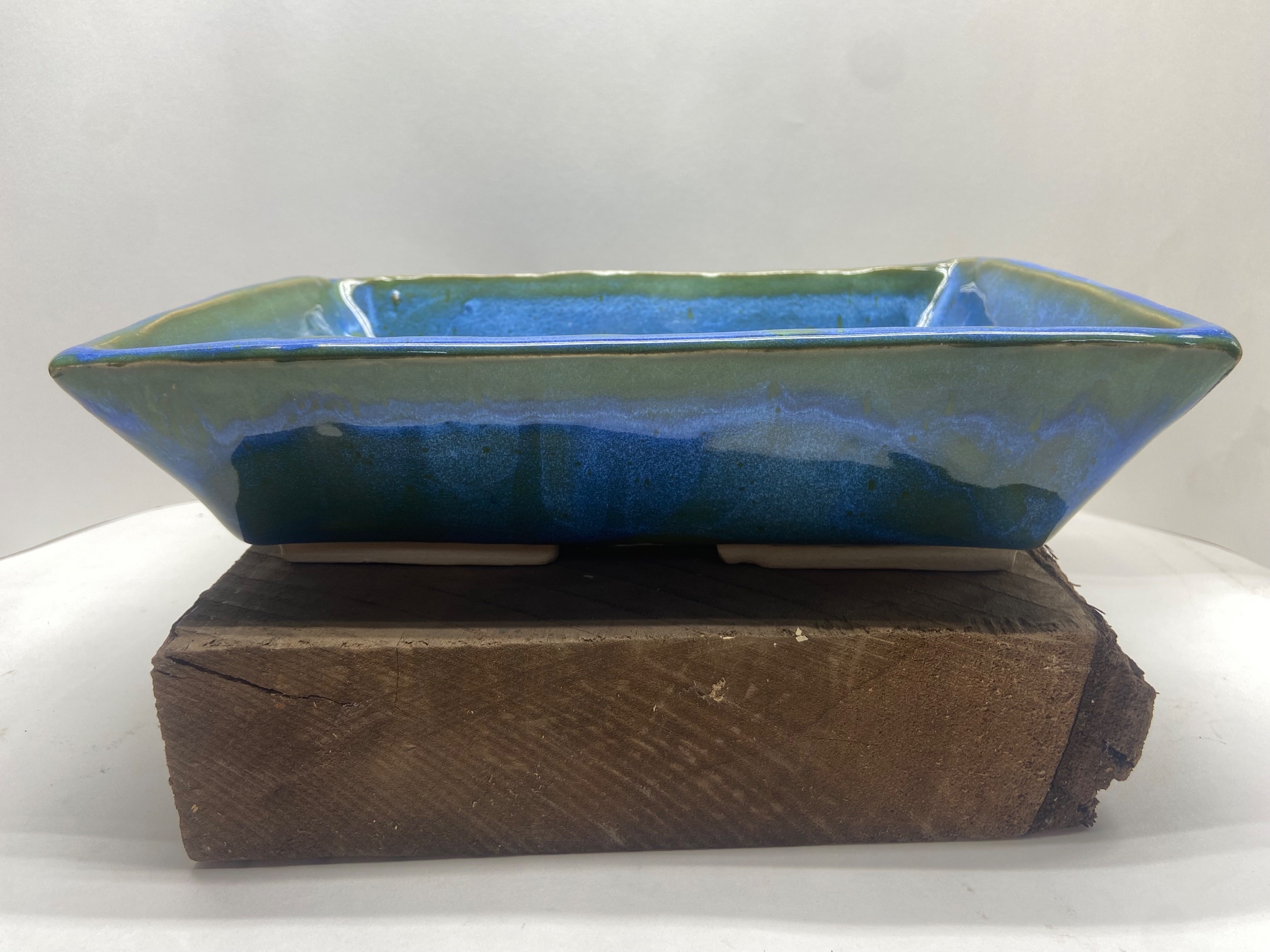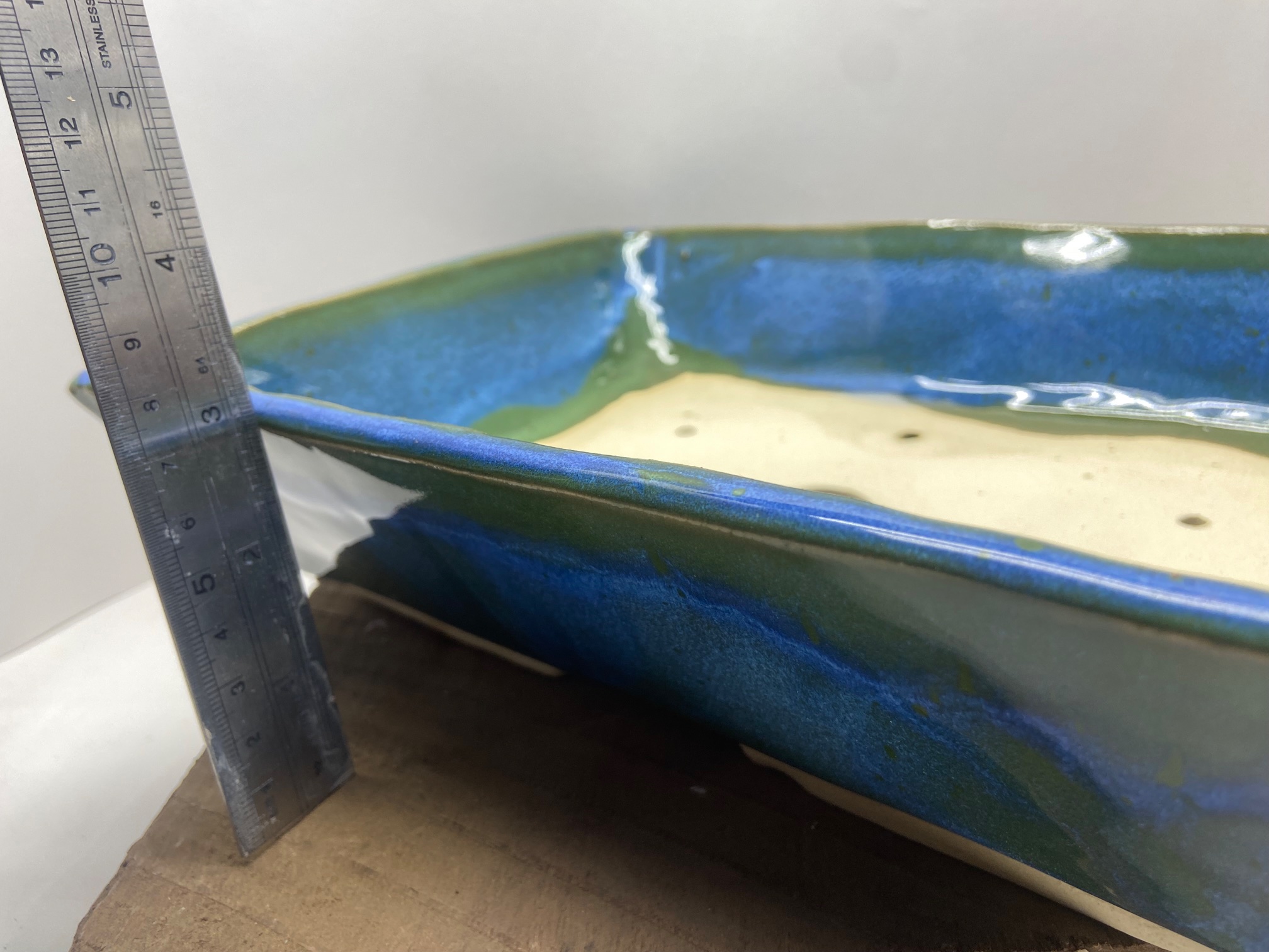 Large Rectangular Ocean Blue/Green Bonsai Pot –