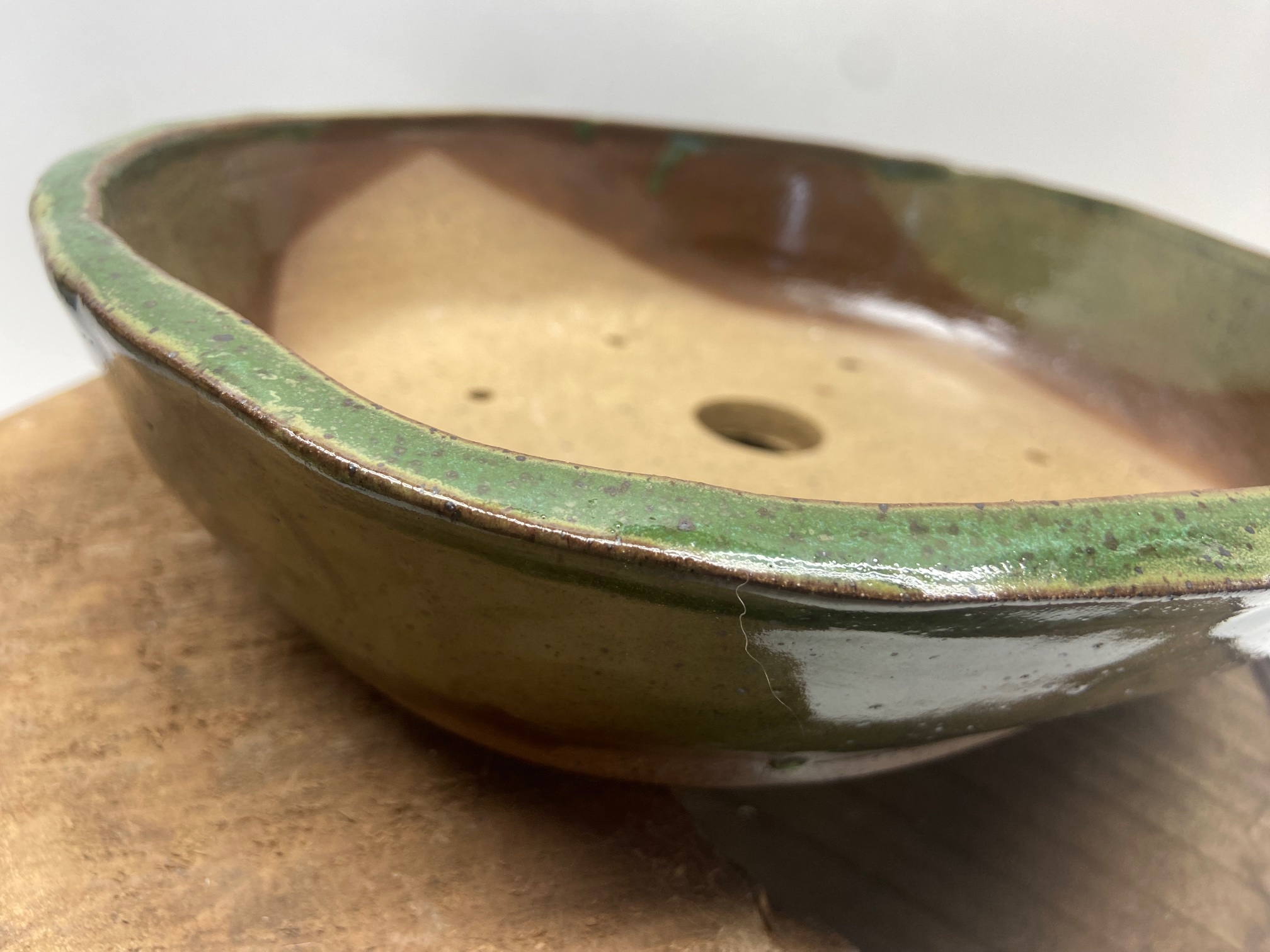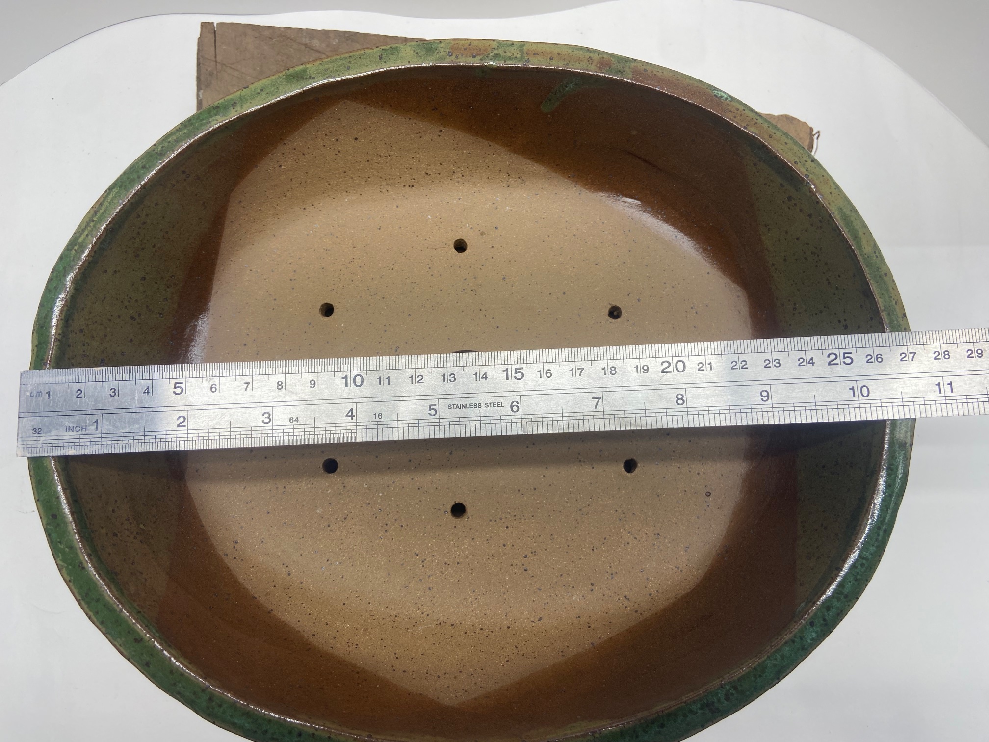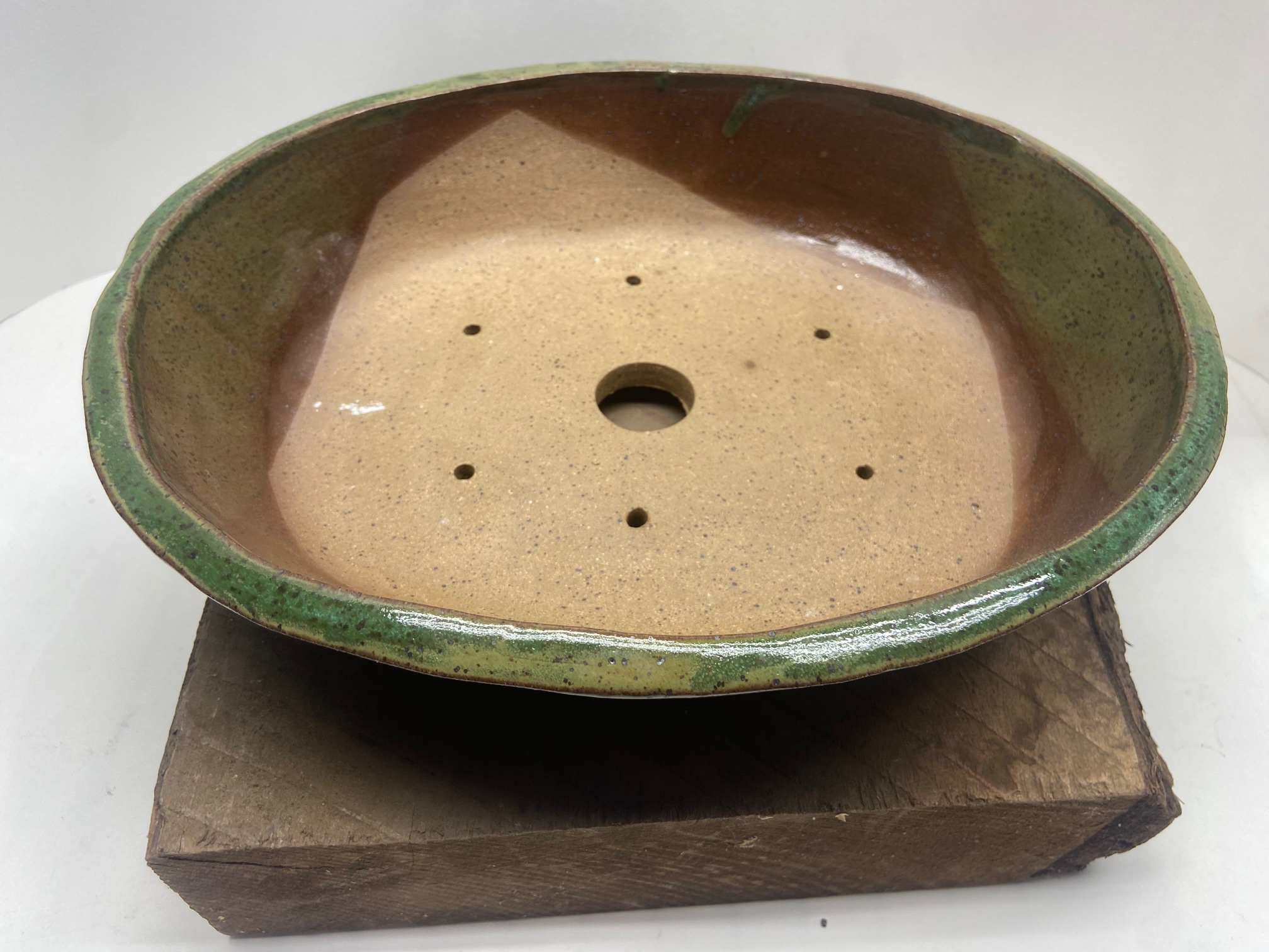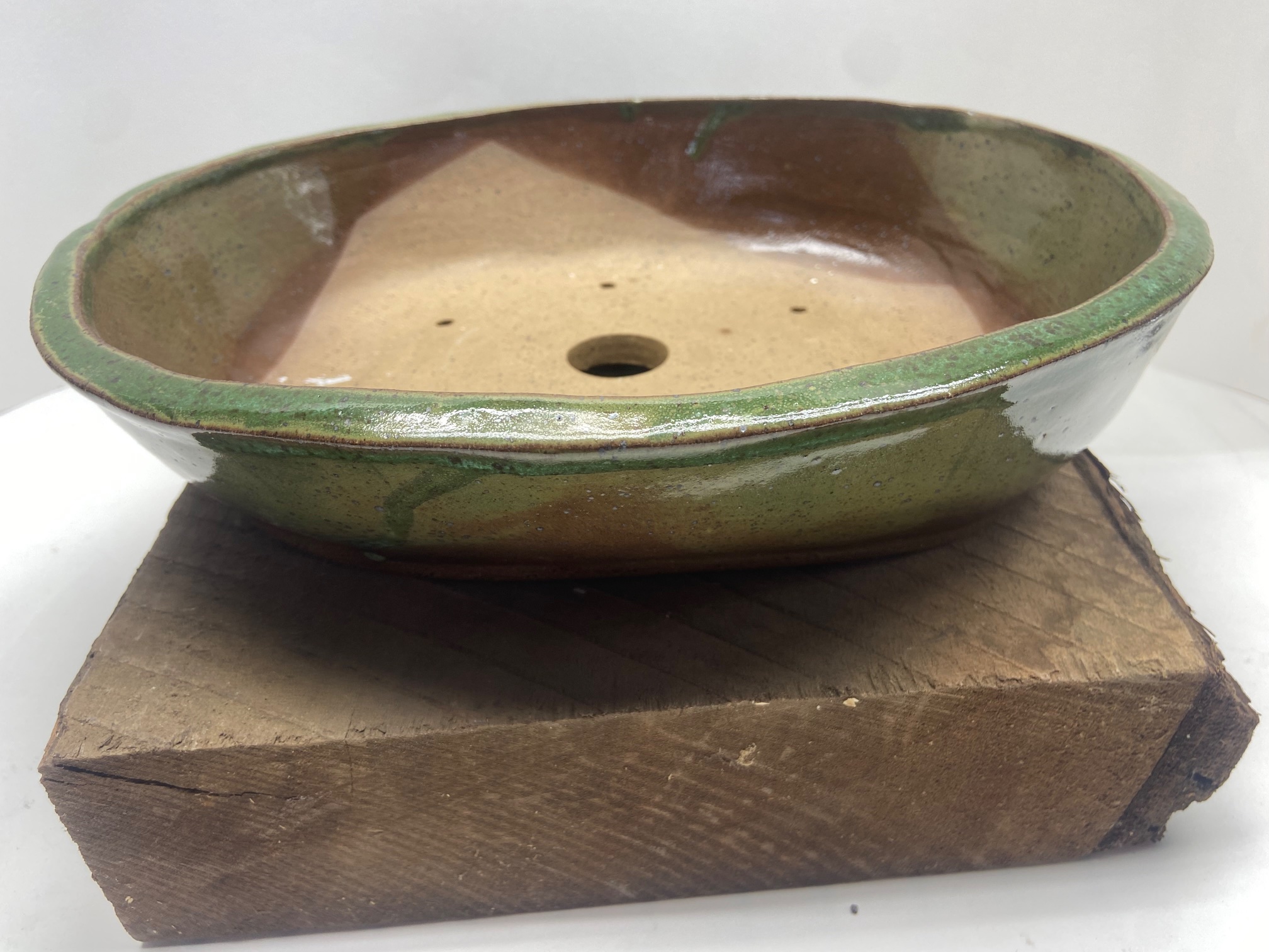 Large Oval Green/Yellow/Brown Speckled Bonsai Pot – Available Immediately