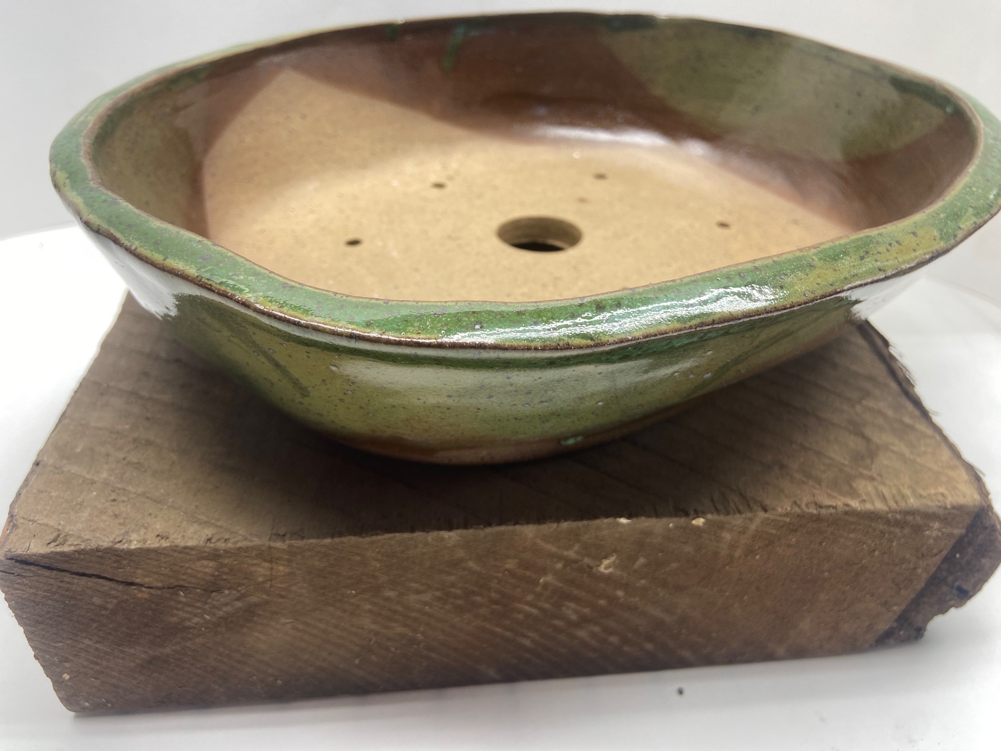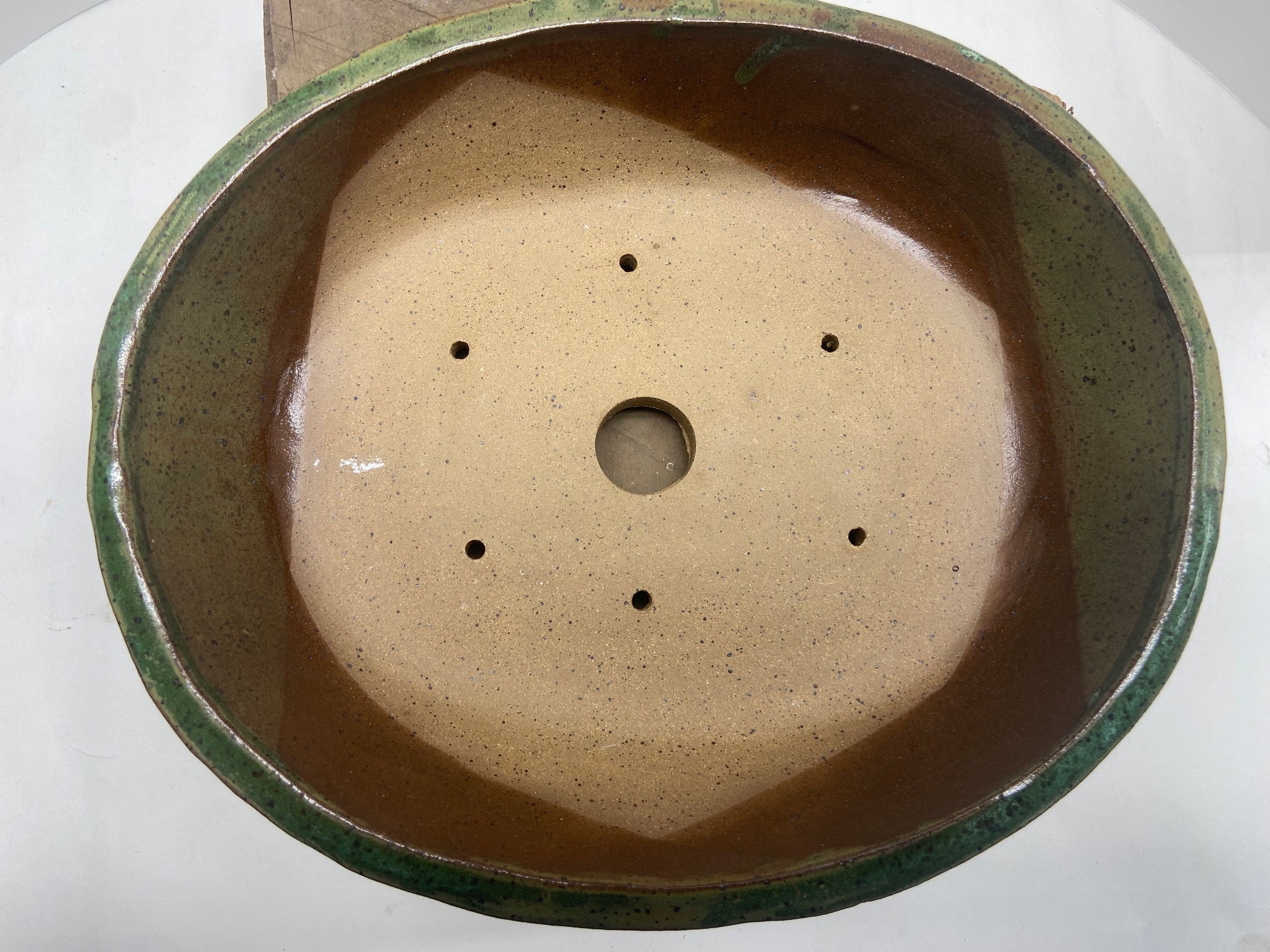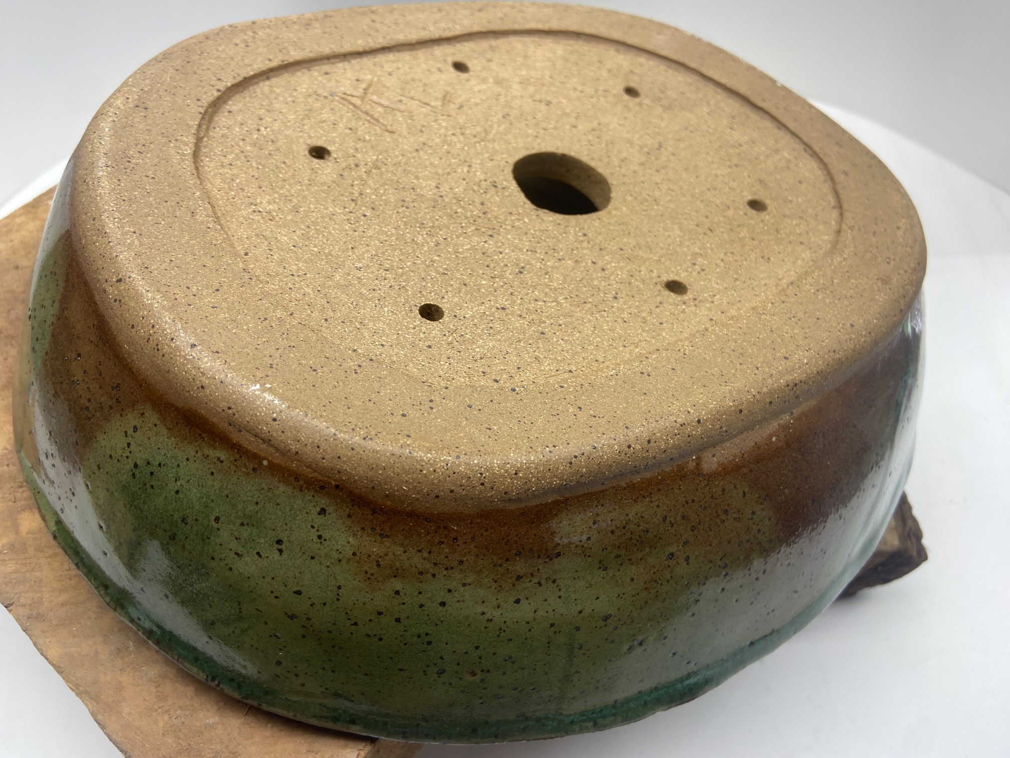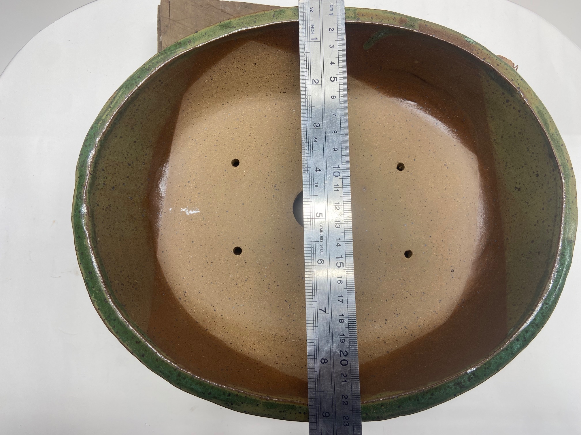 Large Oval Green/Yellow/Brown Speckled Bonsai Pot – Available Immediately