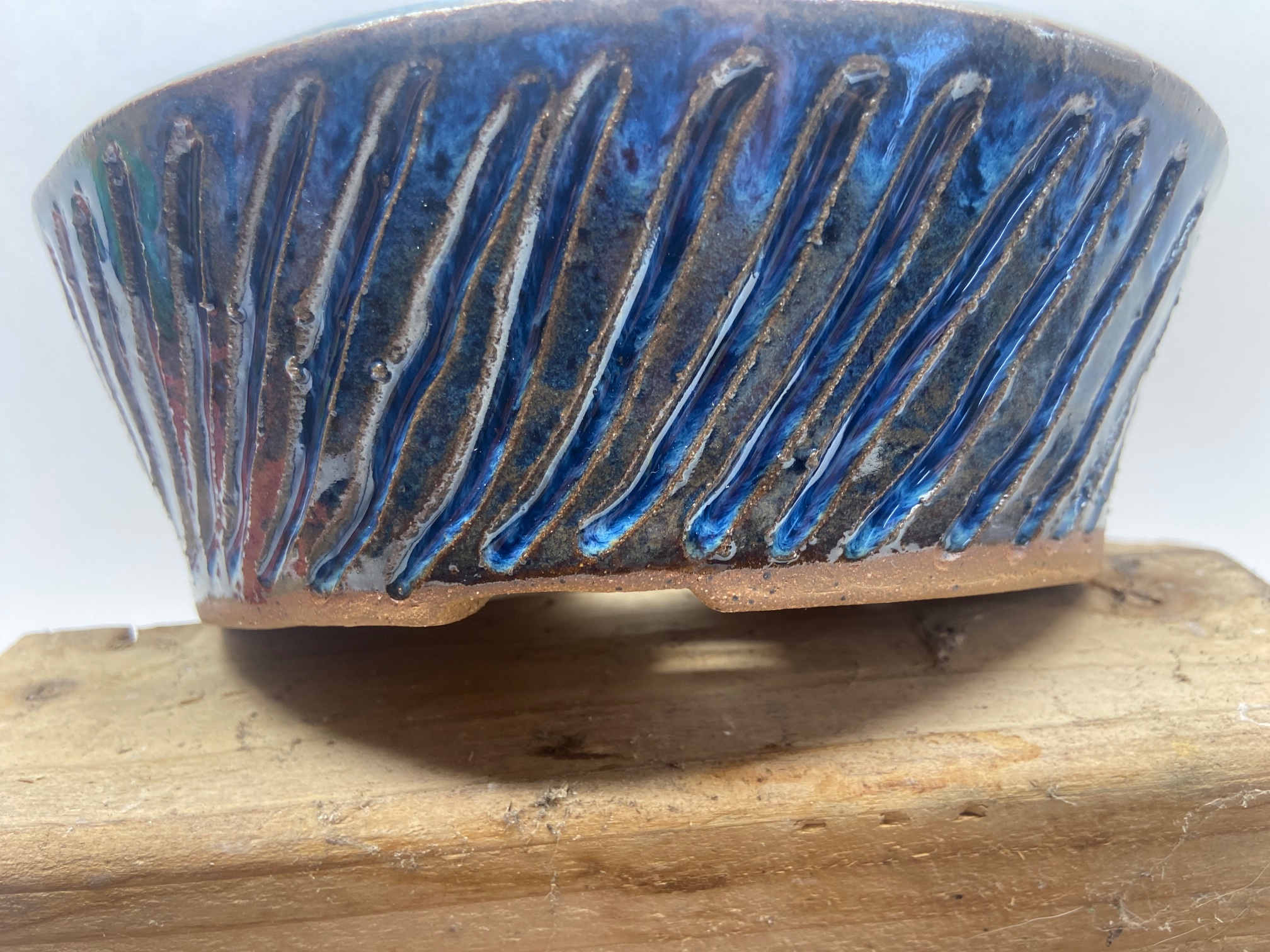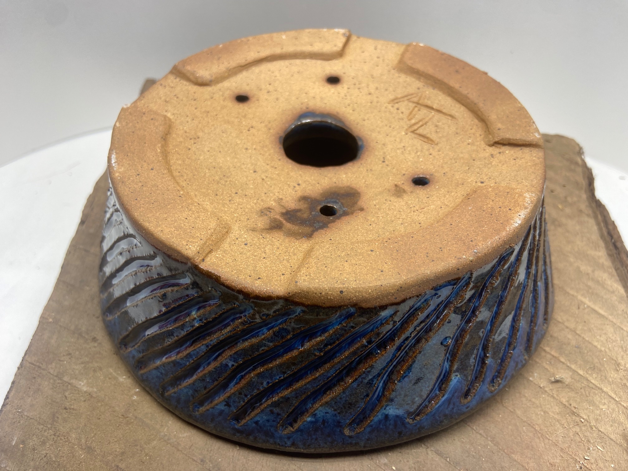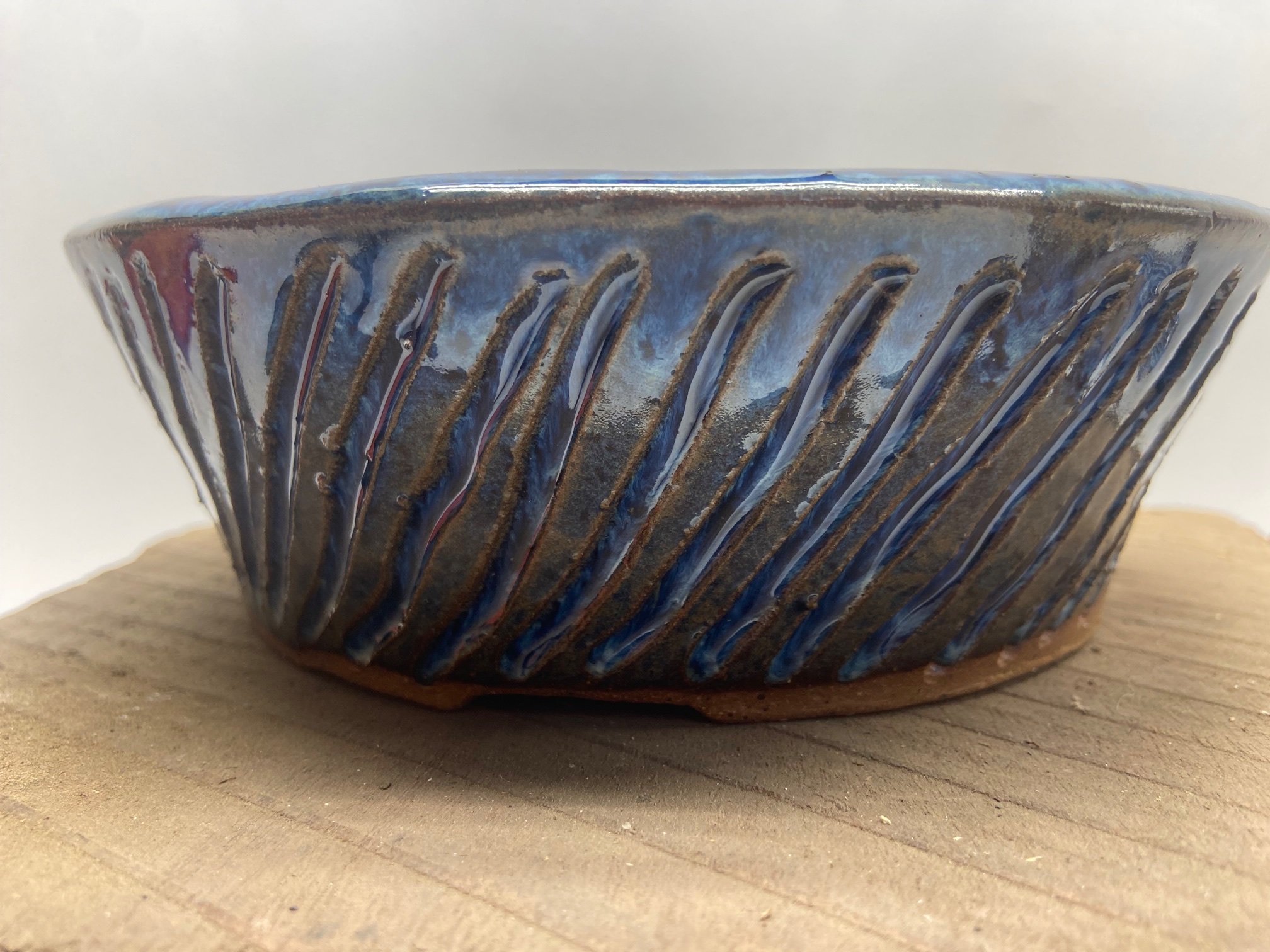 Round Medium Indigo Float Carved Bonsai Pot –