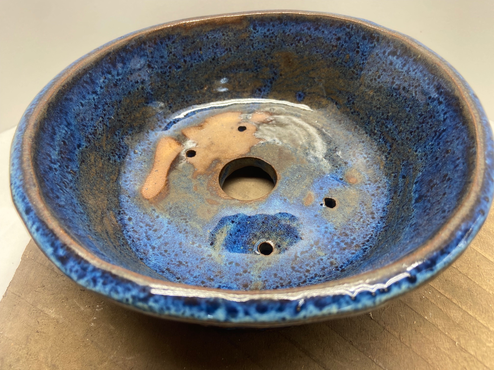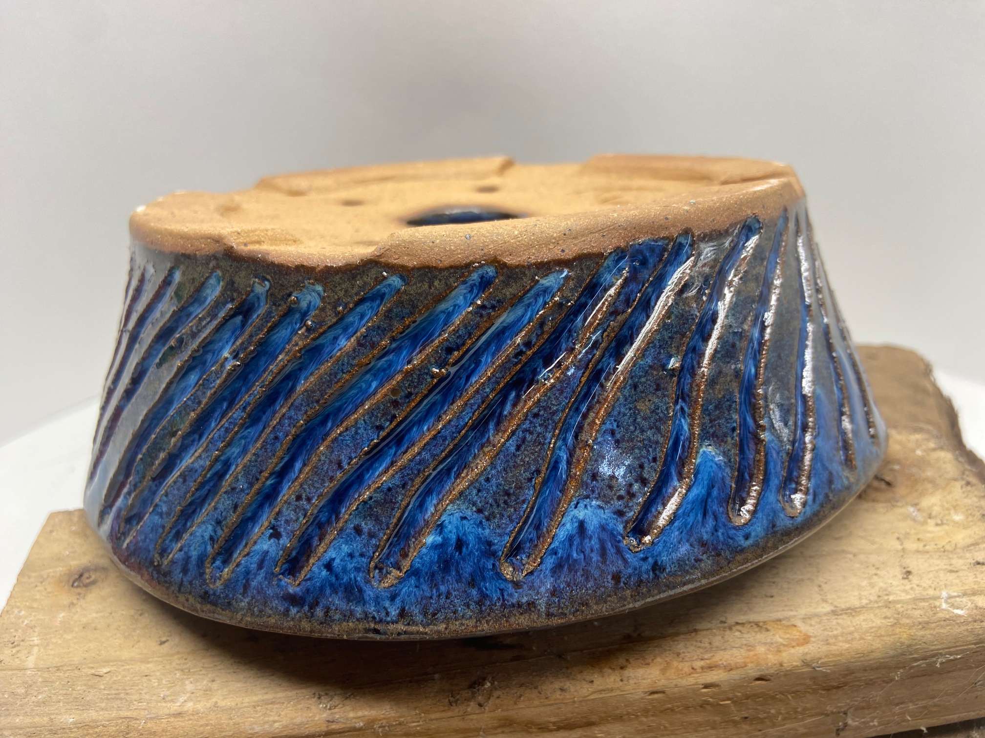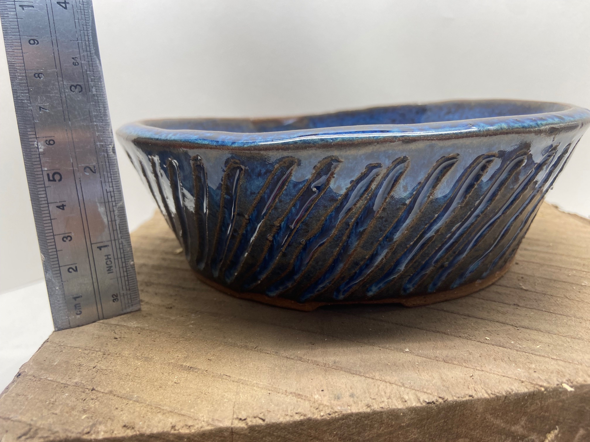 Round Medium Indigo Float Carved Bonsai Pot –