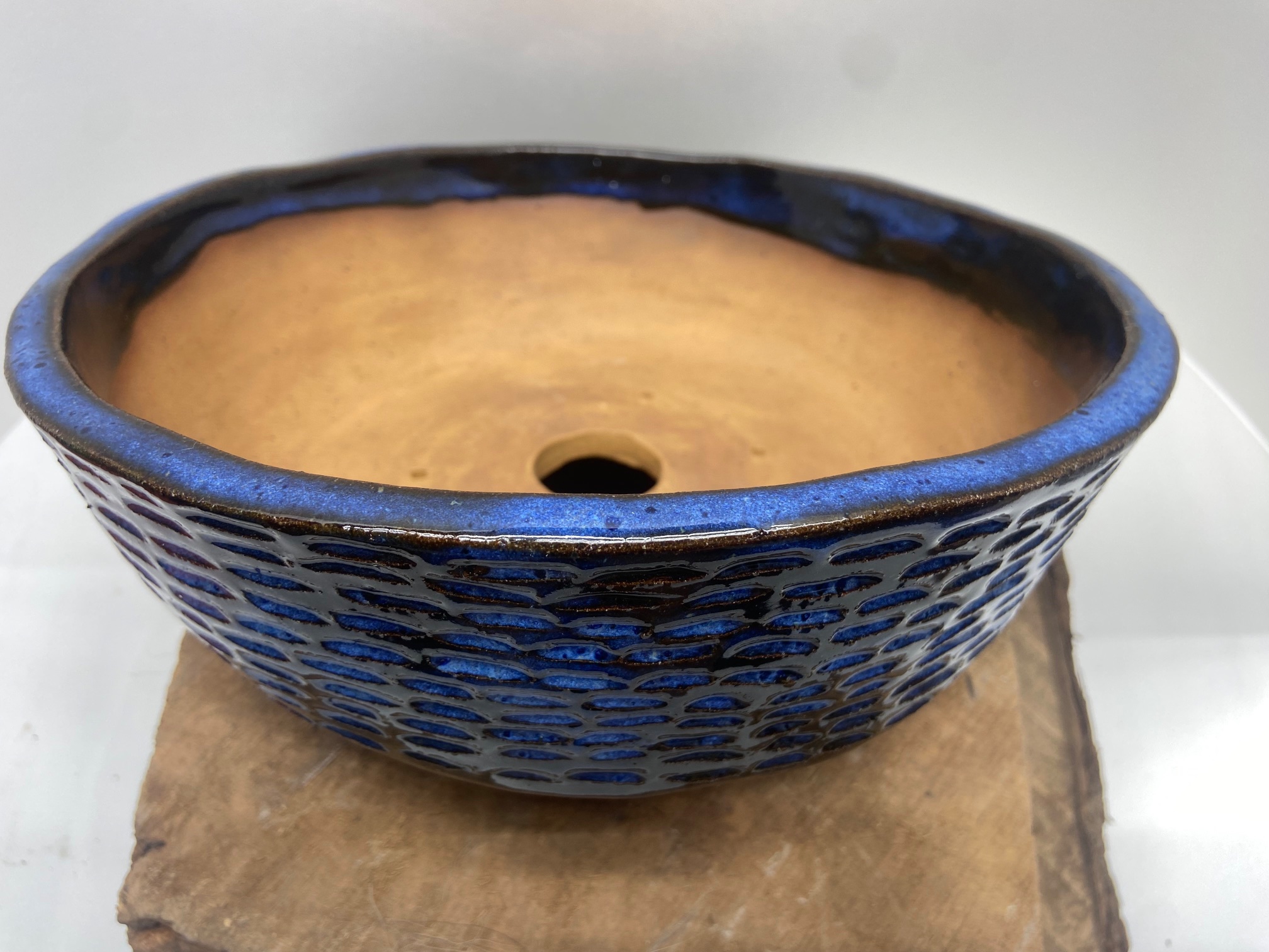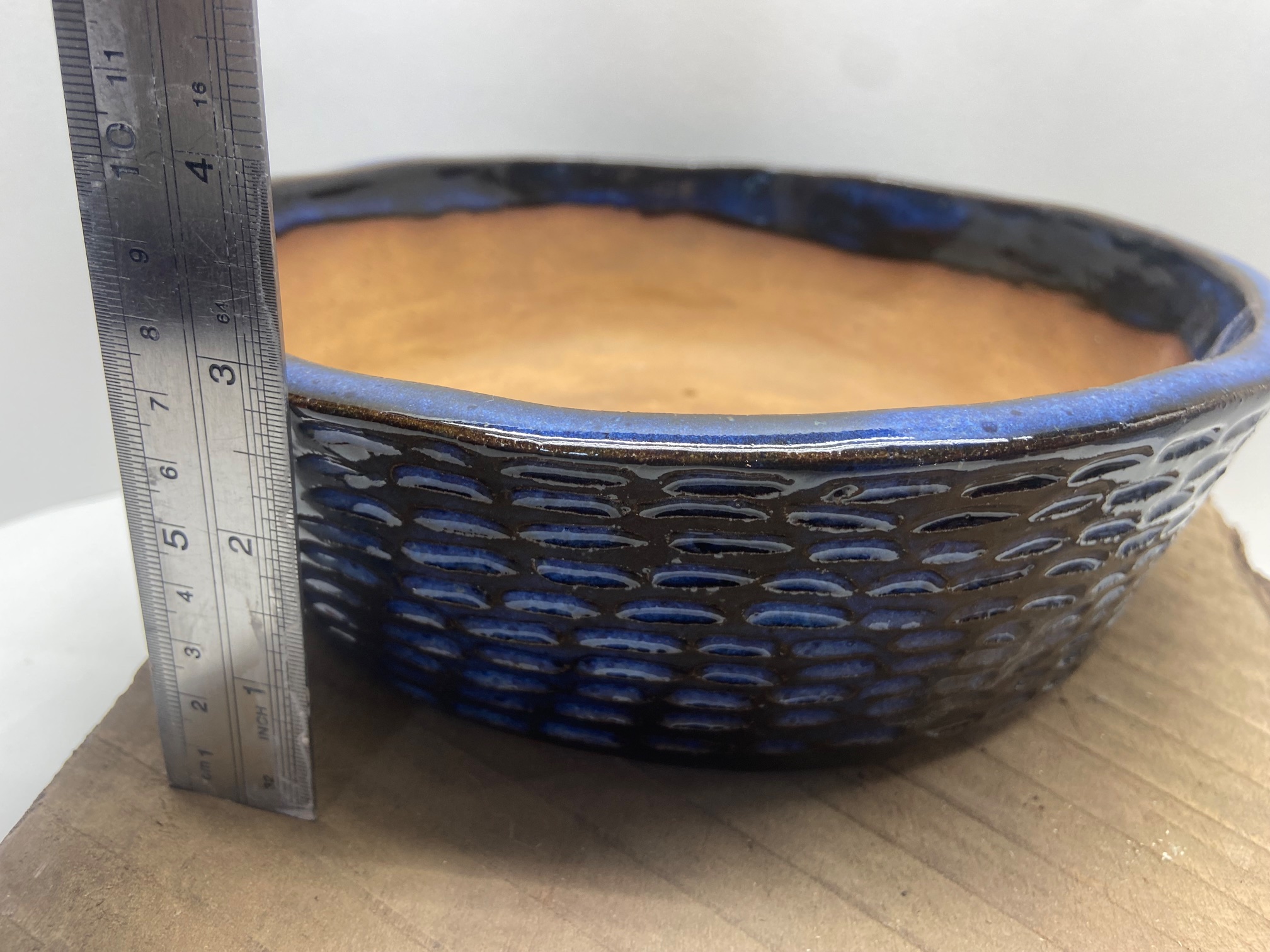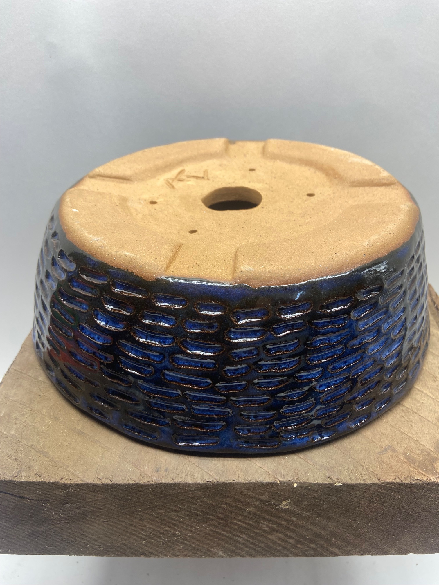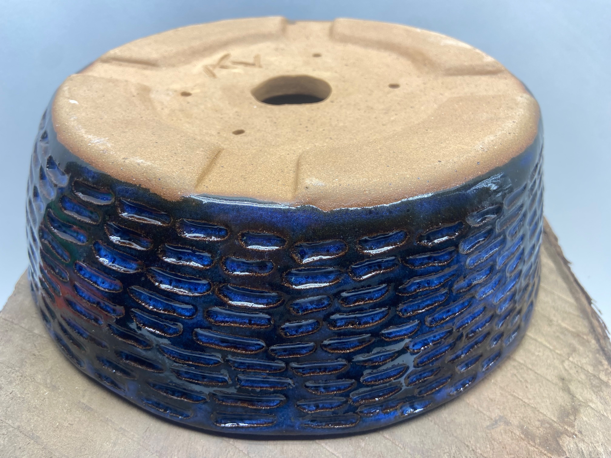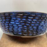 Round Large Indigo Float Carved Bonsai Pot –