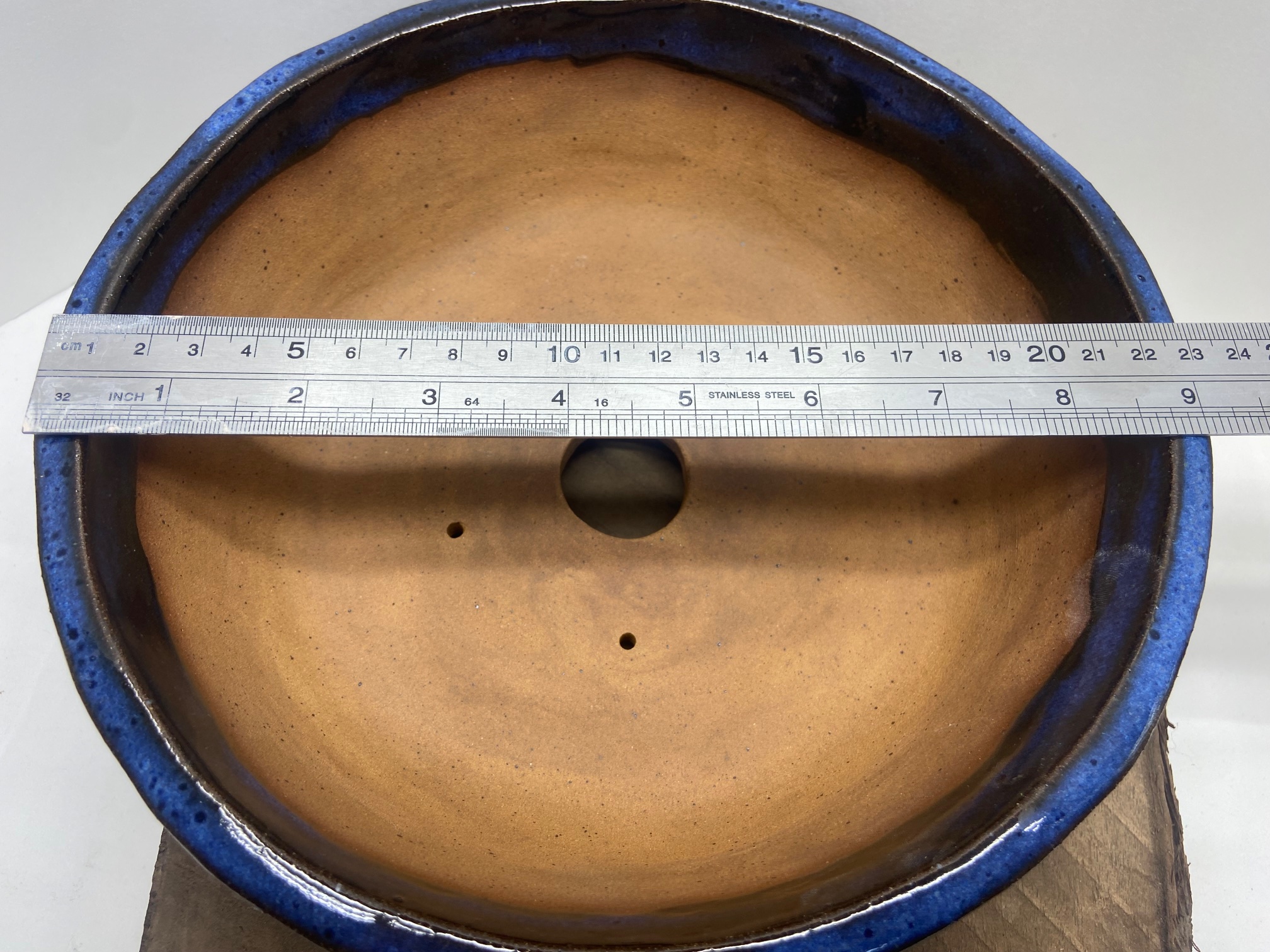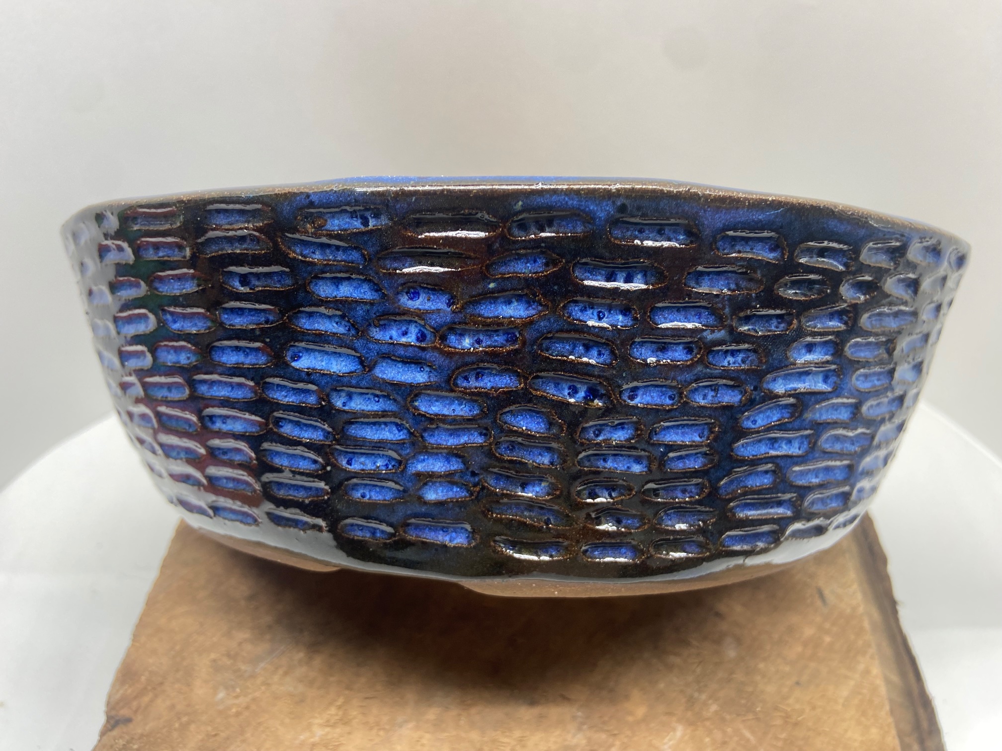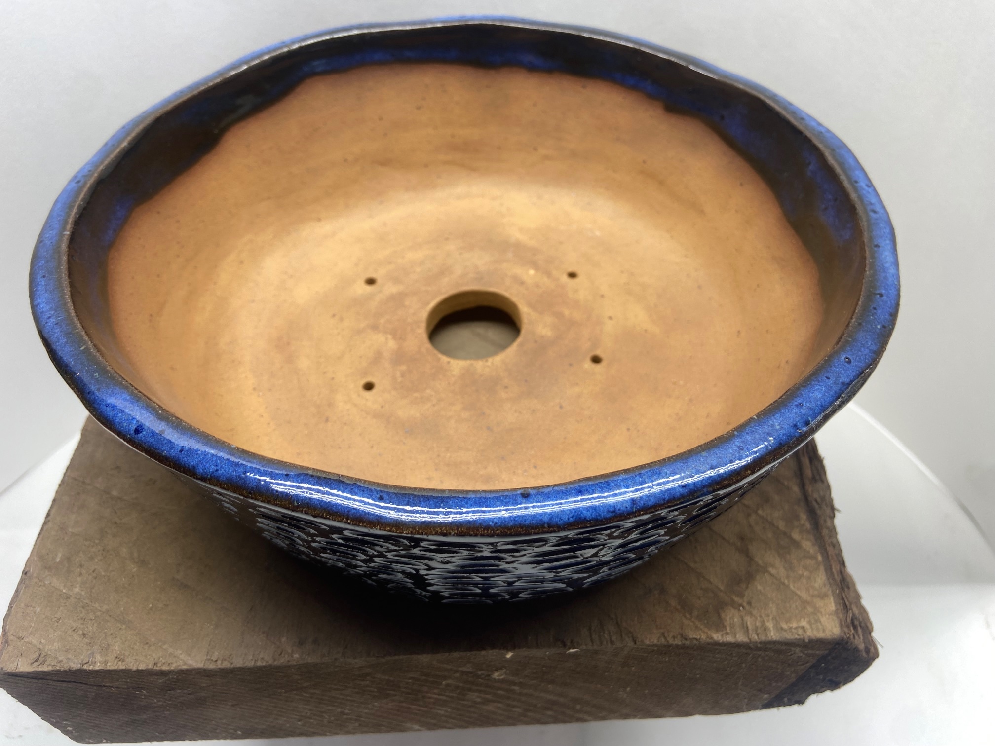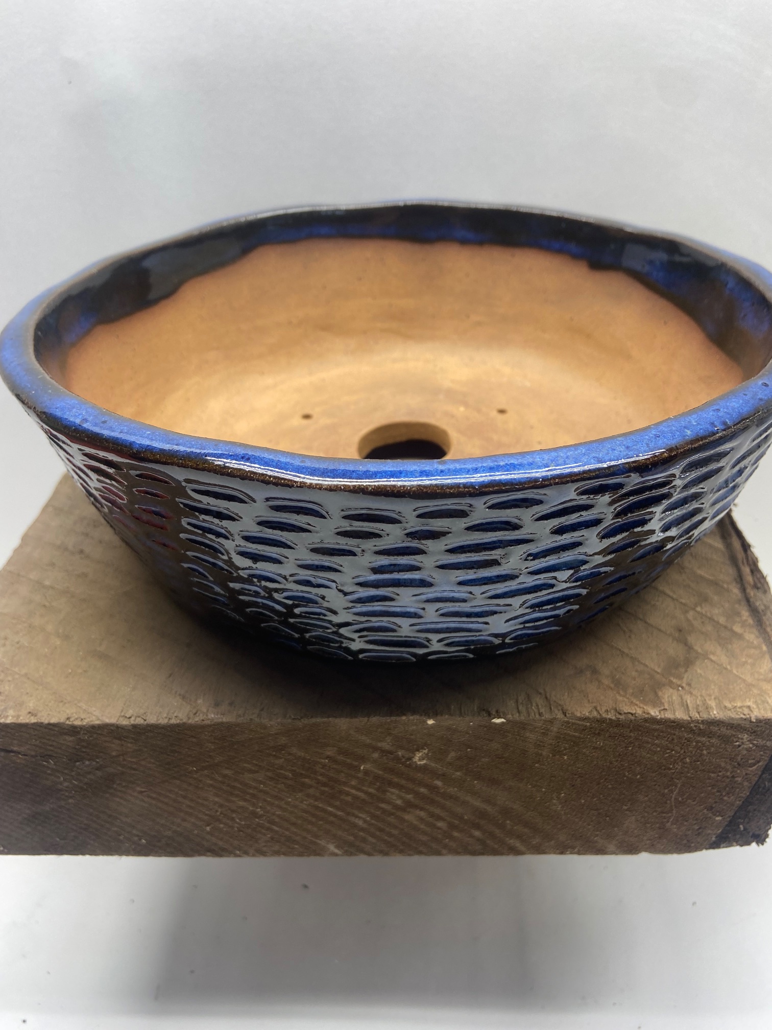 Round Large Indigo Float Carved Bonsai Pot –