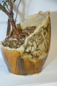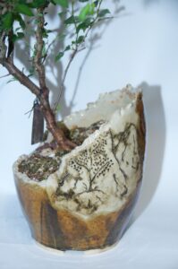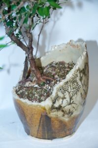 BPOR-01 – Broken Shard Glazed Bonsai Pot w/ Mountain Scene – $90