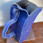 Looking for a perfect gift for family or friends? Or looking for a beautiful ceramic piece to not only admire but to use? This is a hand-built ceramic pitcher from WorldTraveler Creative Designs, by Aaron Loukonen. This fully functional, food safe pitcher features a smooth surface, a hardy handle, and a long spout. The glaze is a beautiful deep blue with flecks of white. The interior, a darker grey, is fully glazed. Fully vitrified and cold/moisture hardy. Each piece is unique and one-of-a-kind.