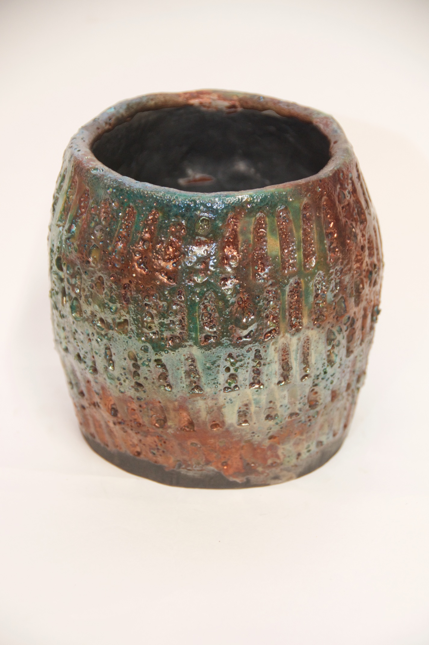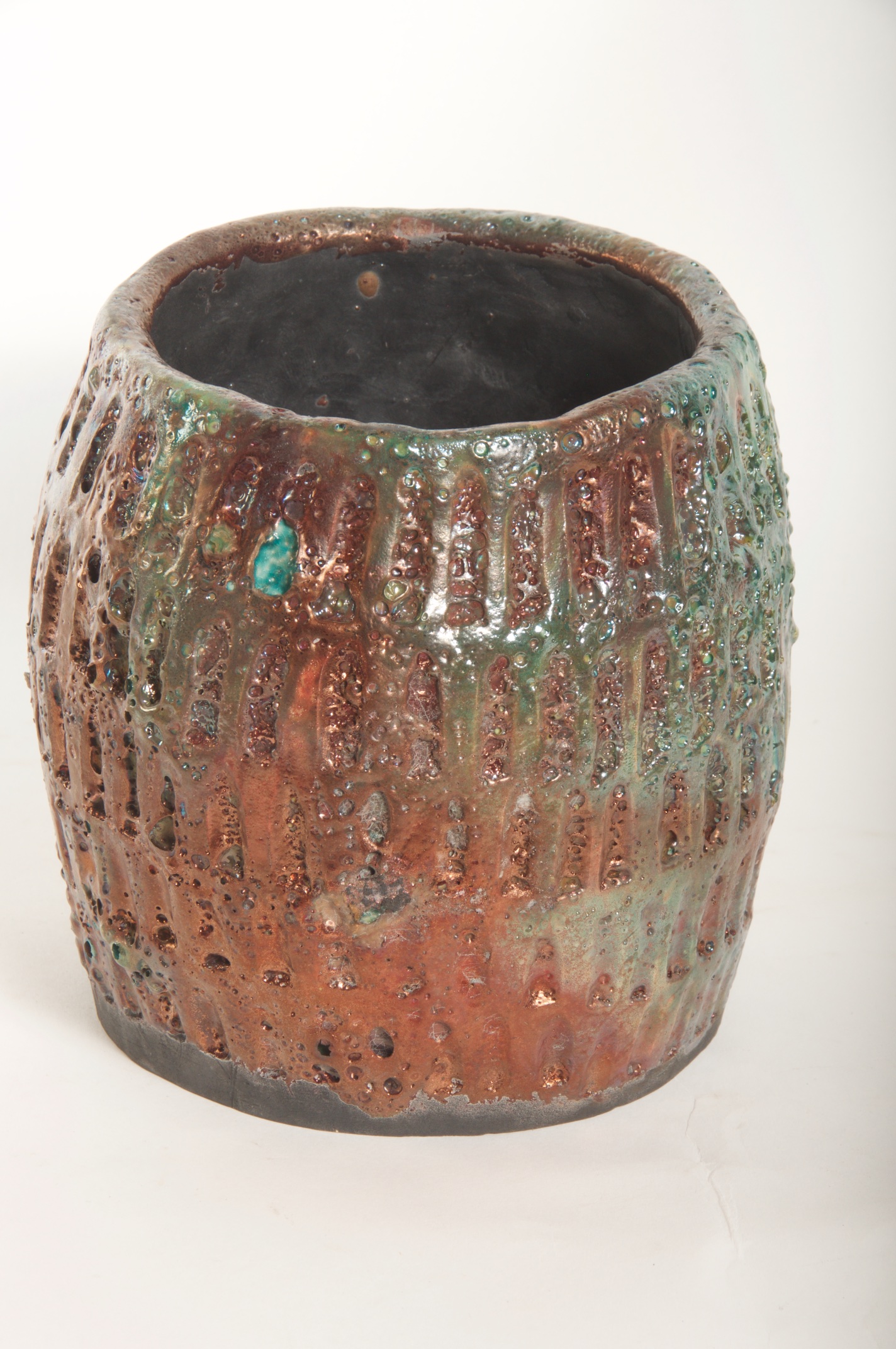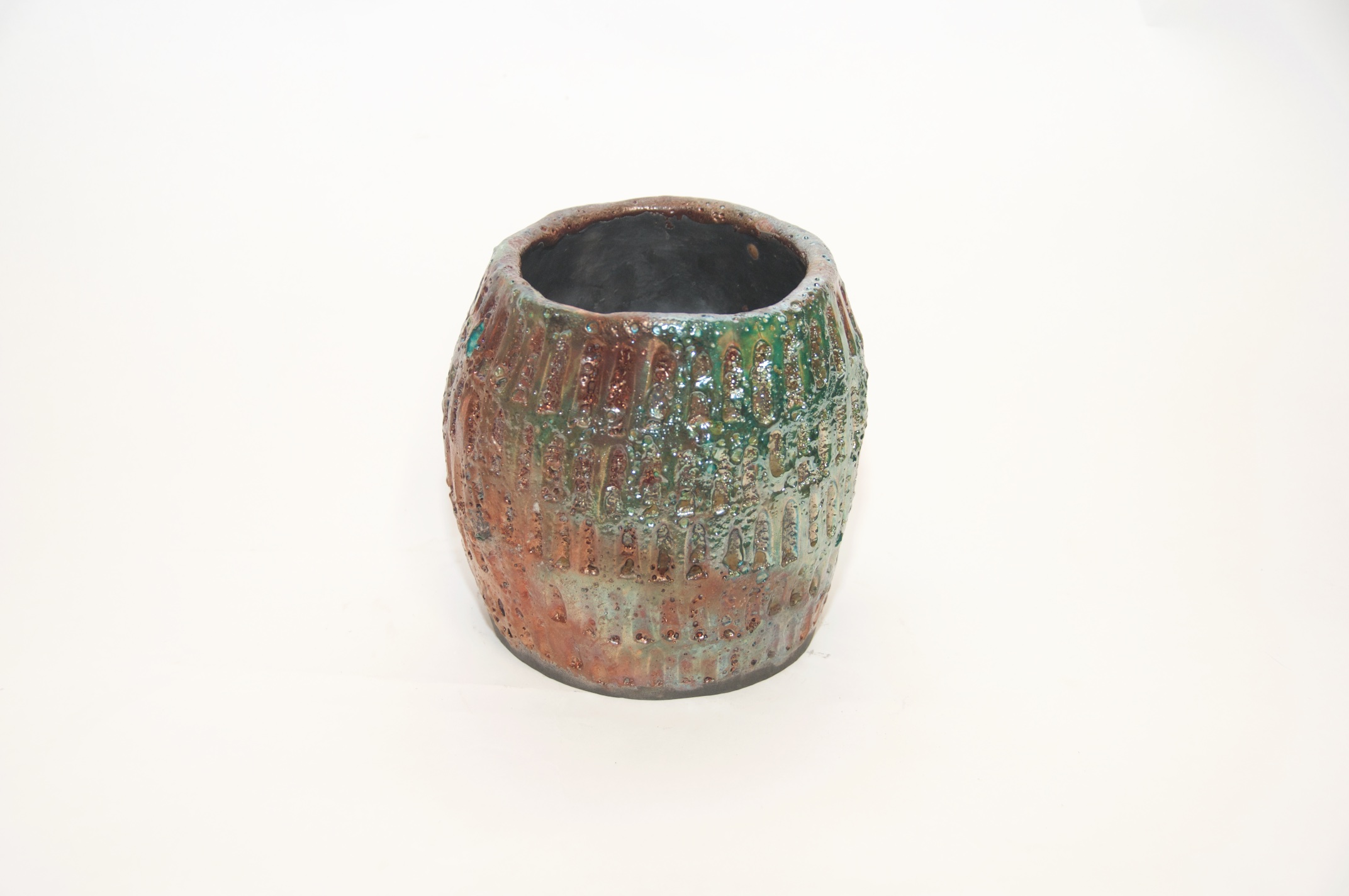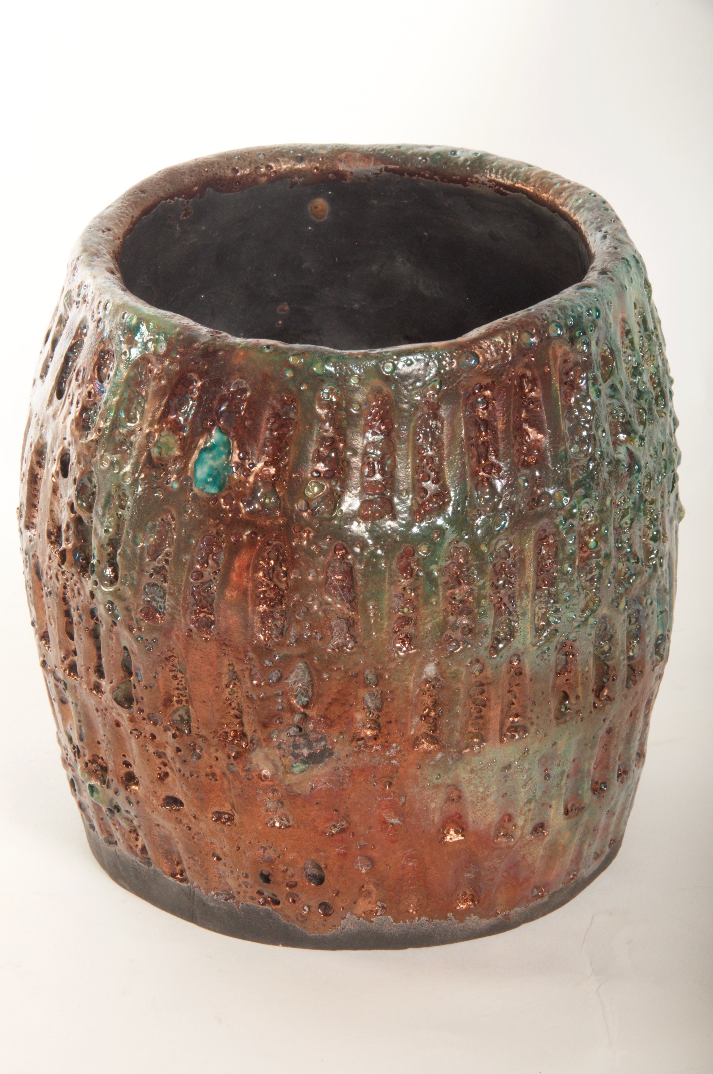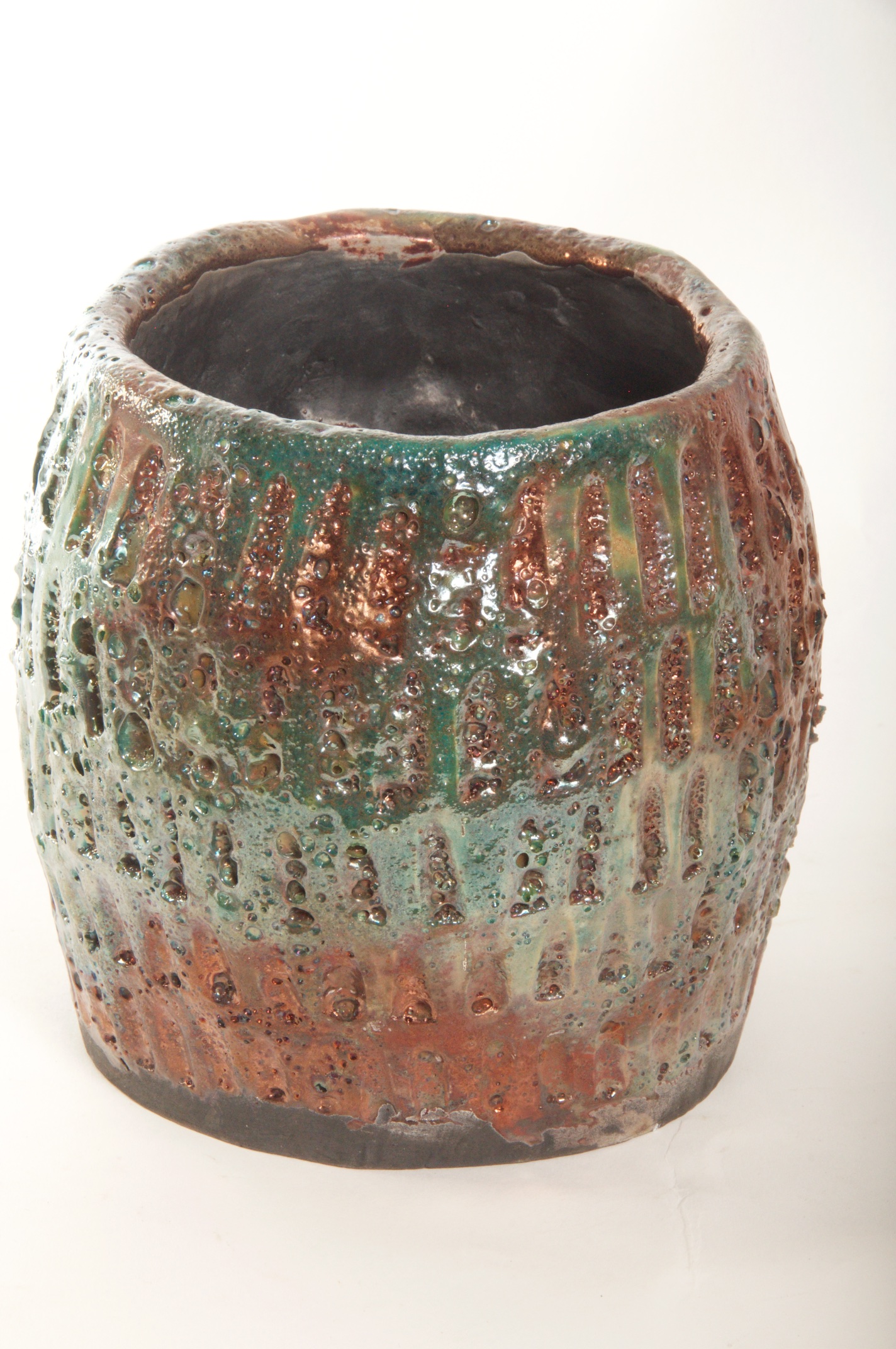 Multi-colored Raku Glazed Decorative Vessel – Available Immediately