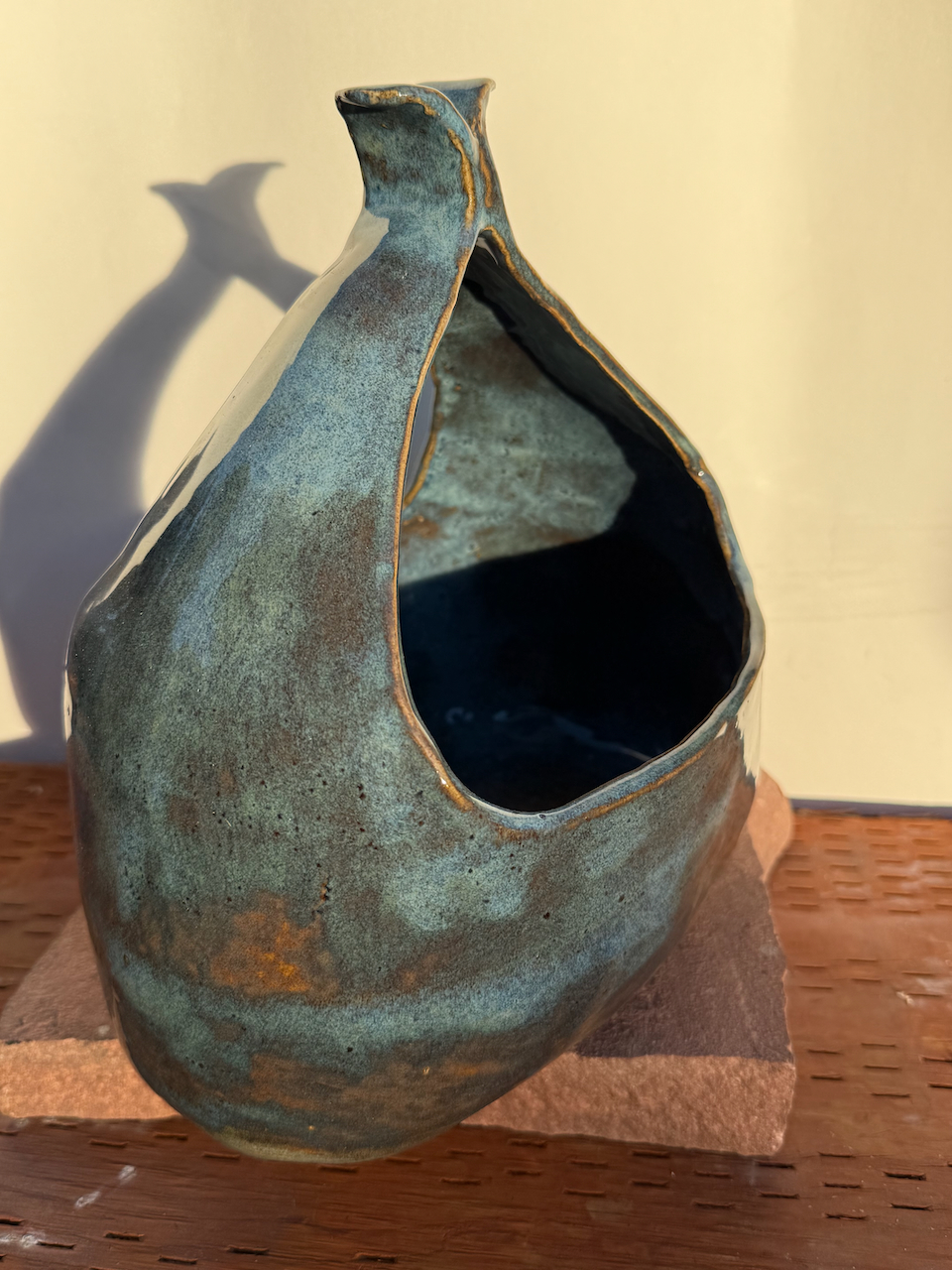 Looking for a perfect gift for family or friends? Or looking for a beautiful ceramic piece to not only admire but to use? This is a hand-built ceramic pitcher from WorldTraveler Creative Designs, by Aaron Loukonen. This decorative vessel can be used to store any sort of items inside it, be it food, arts and crafts, or any other small items. Fully food safe, it can be used for your salads or deserts for your get-togethers. Or it can just be a beautiful piece of handbuilt pottery for display. The exterior glaze is a mix of hazy blue and deep brown. Fully vitrified and cold/moisture hardy. Each piece is unique and one-of-a-kind.