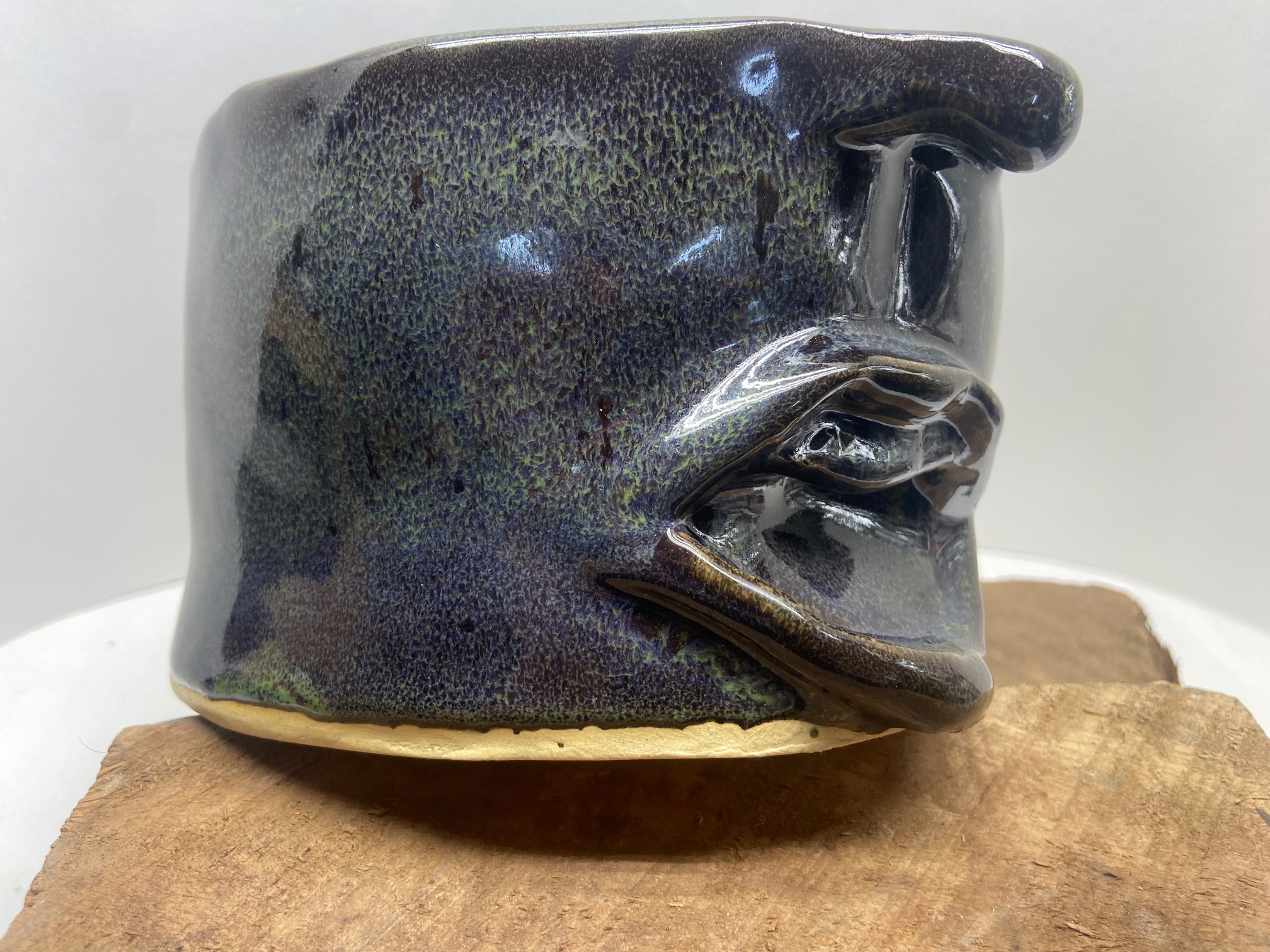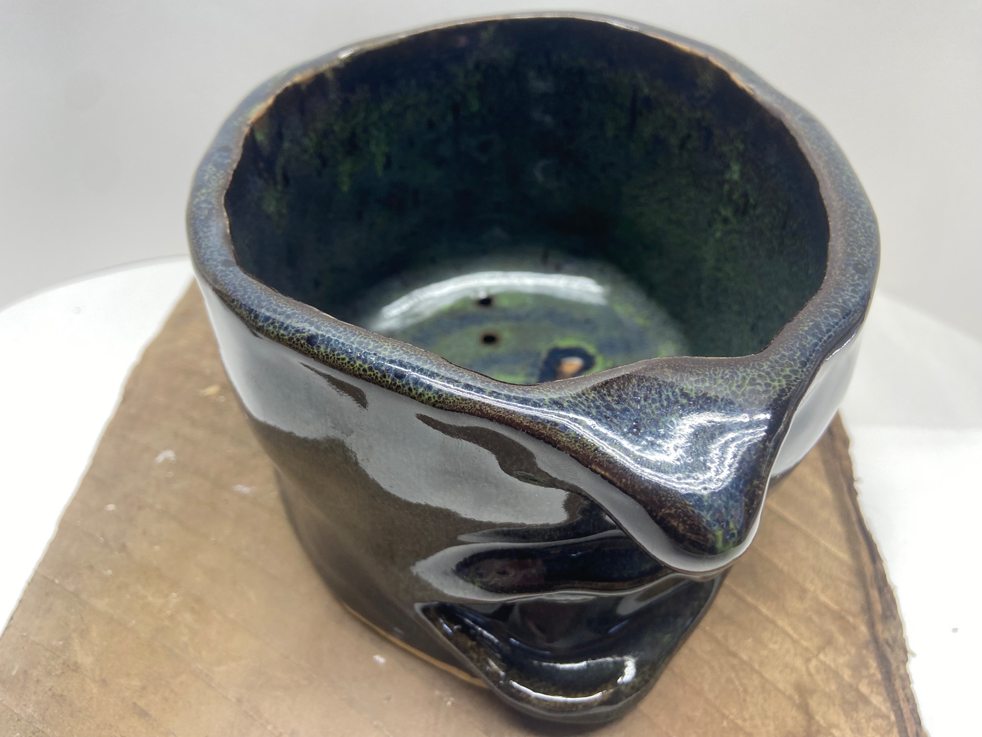 Faces Series Plant Pot 02 – Half-Face Talking Lips Blue-Green Plant Pot –