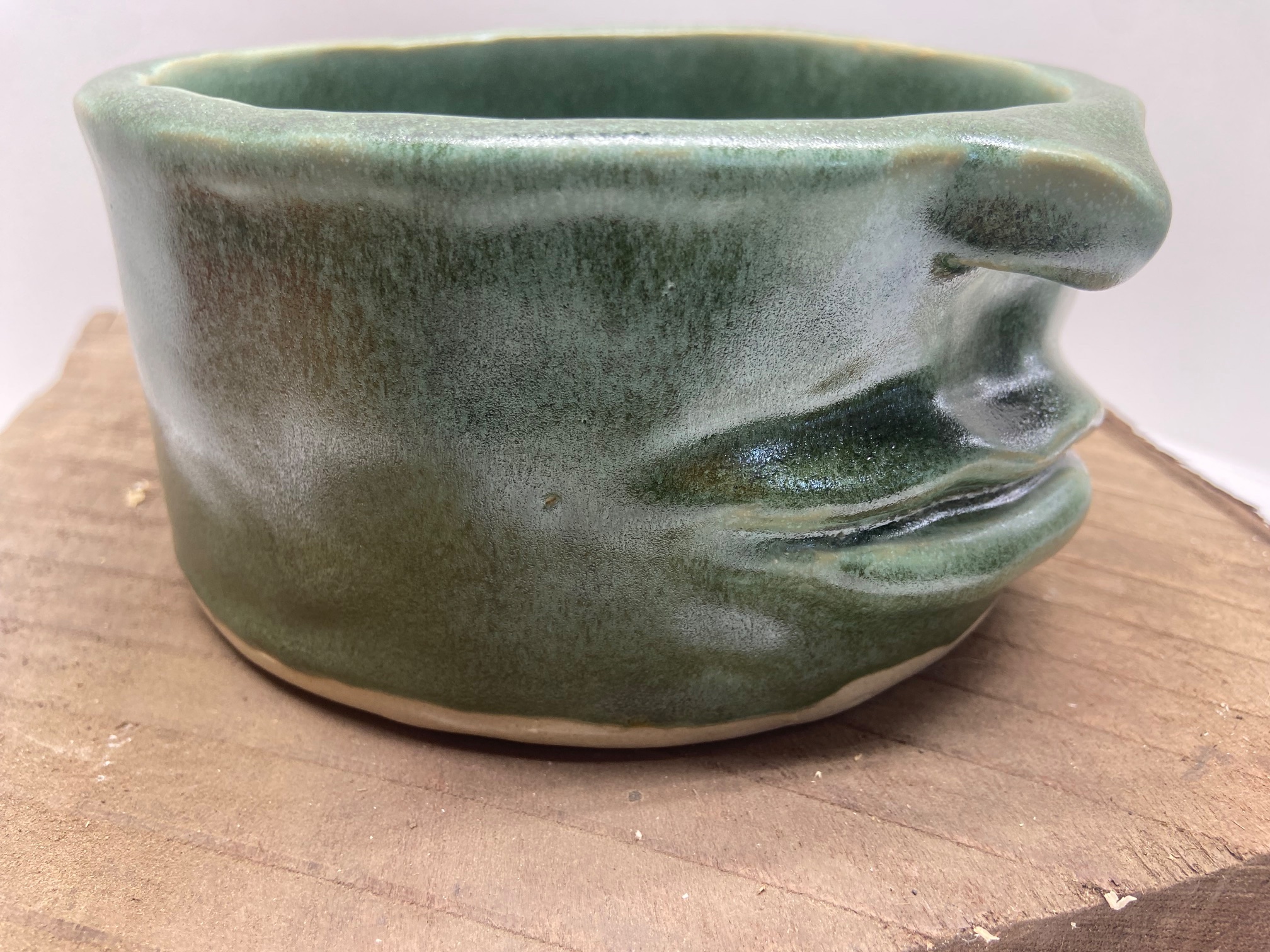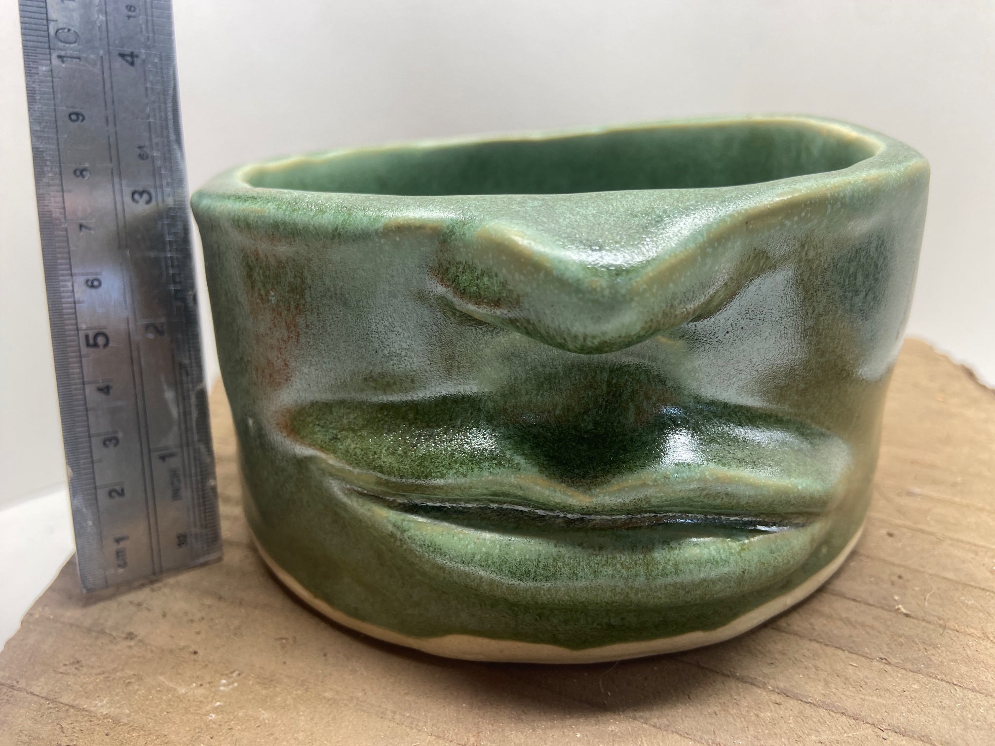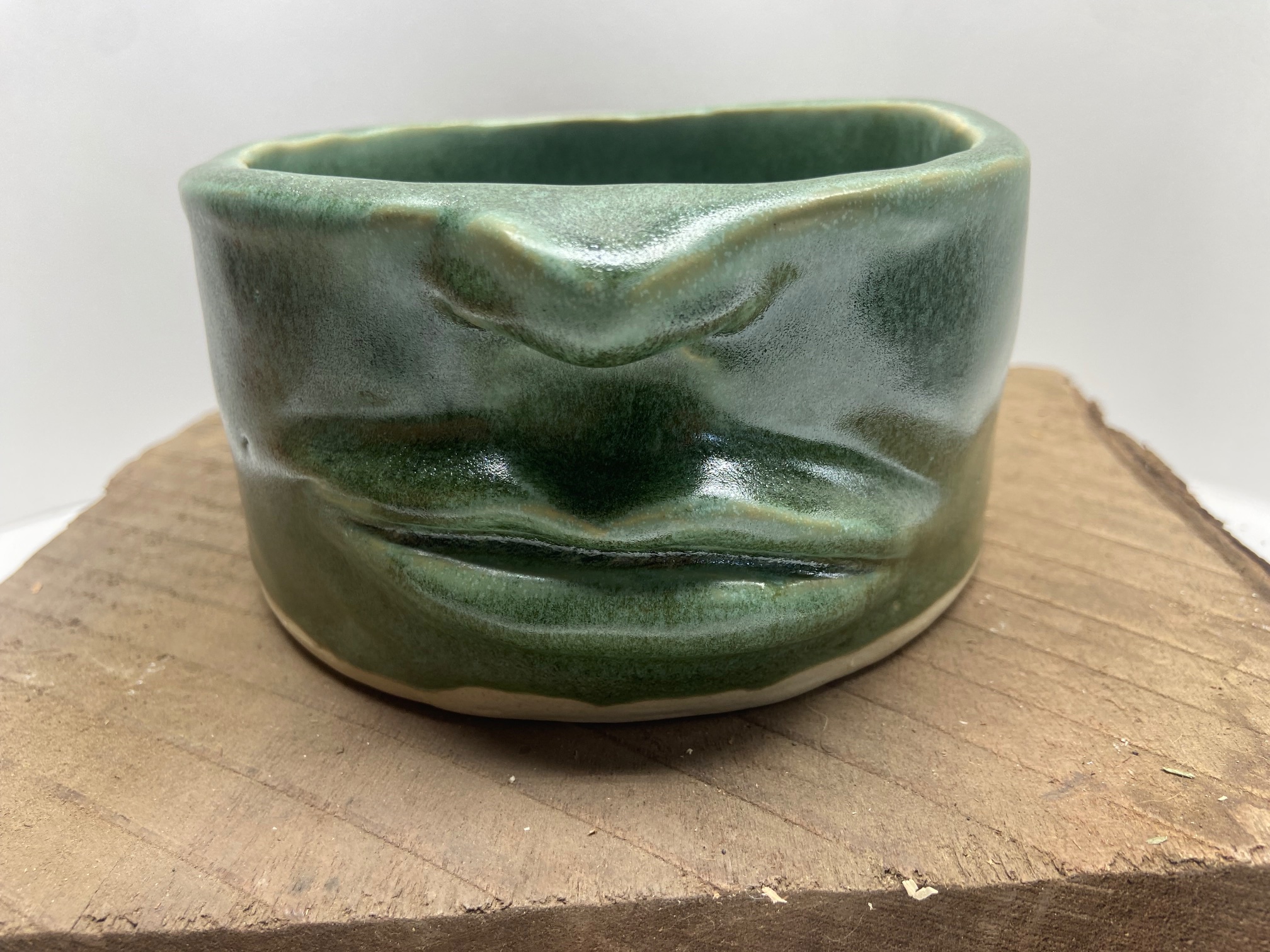 Faces Series Plant Pot 03 – Half-Face Smirking Lips Green Plant Pot –